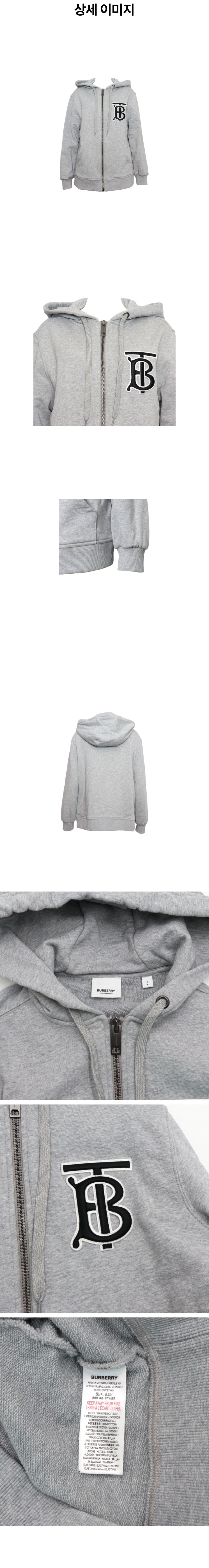 버버리 8017449 그레이 코튼 TB로고 여성 후드 집업 자켓aa60274