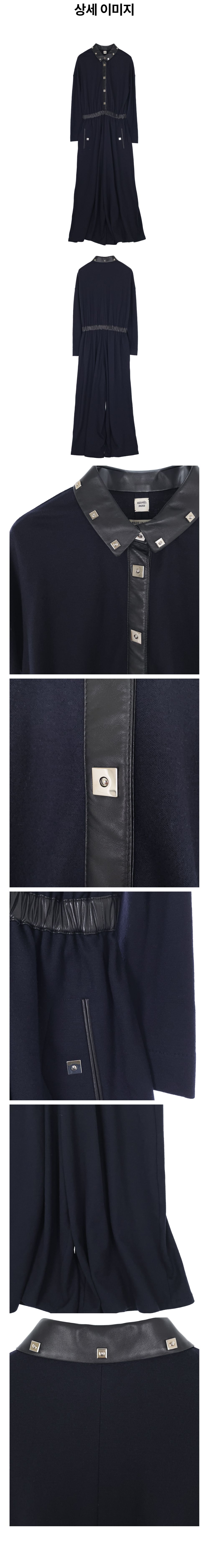 에르메스 레더 카라 점프수트 38 네이비/블랙(6HA0137)