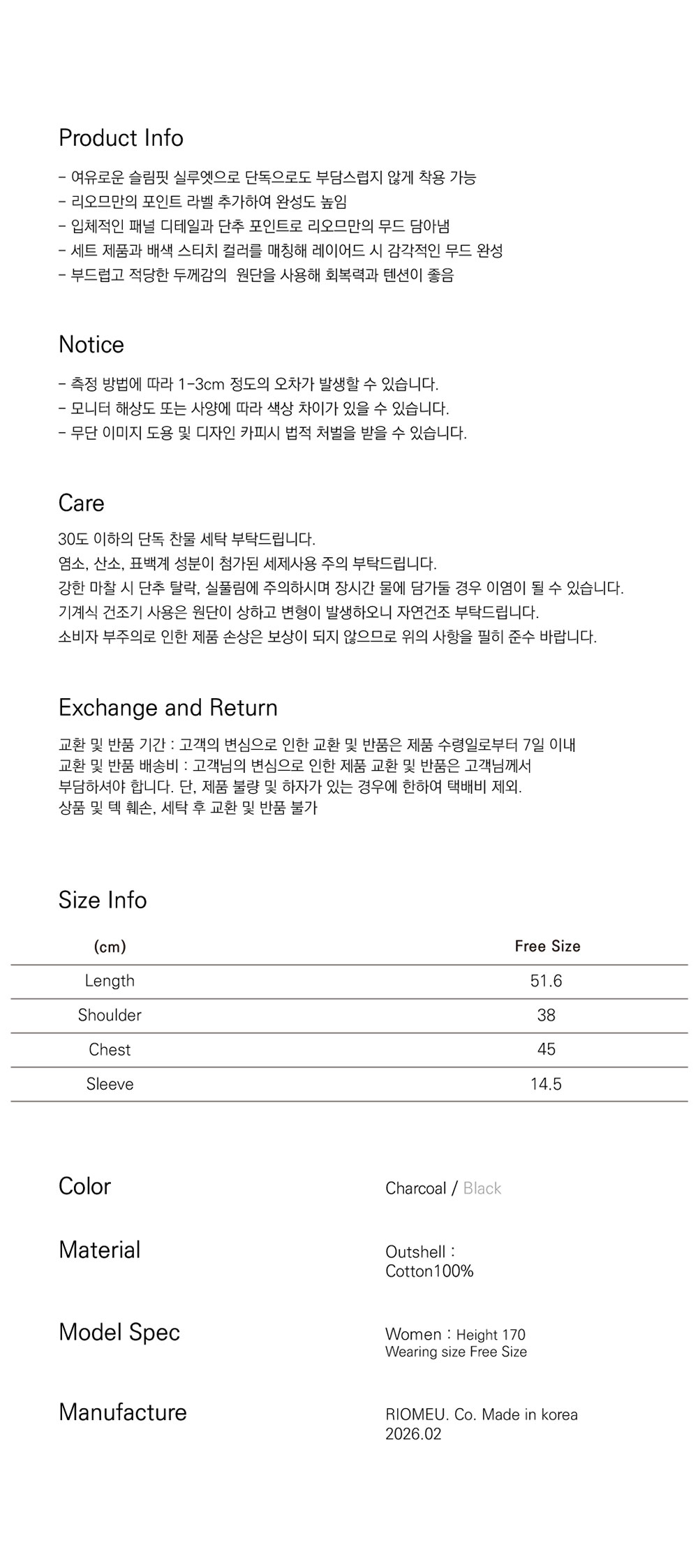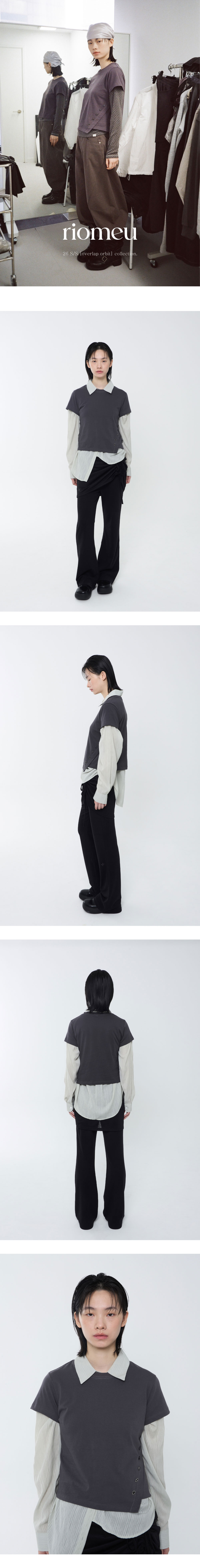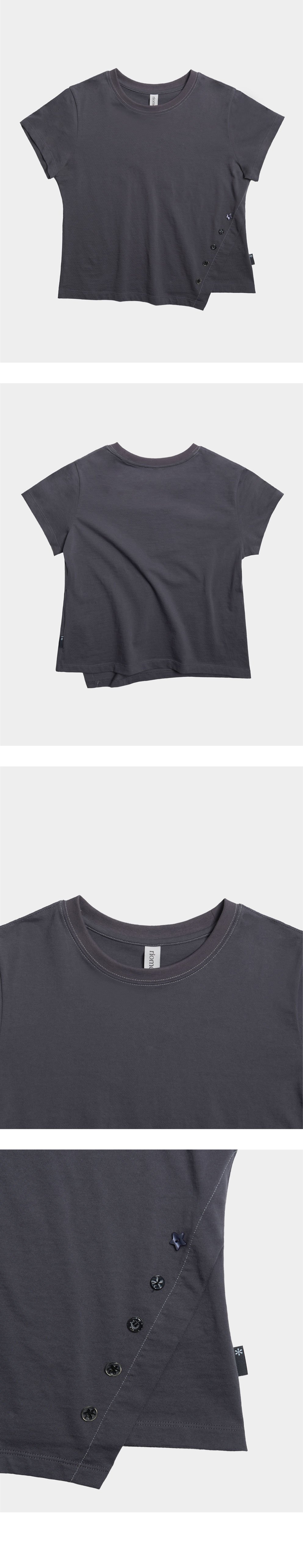 리오므 버튼 언발란스 반팔 티셔츠 차콜