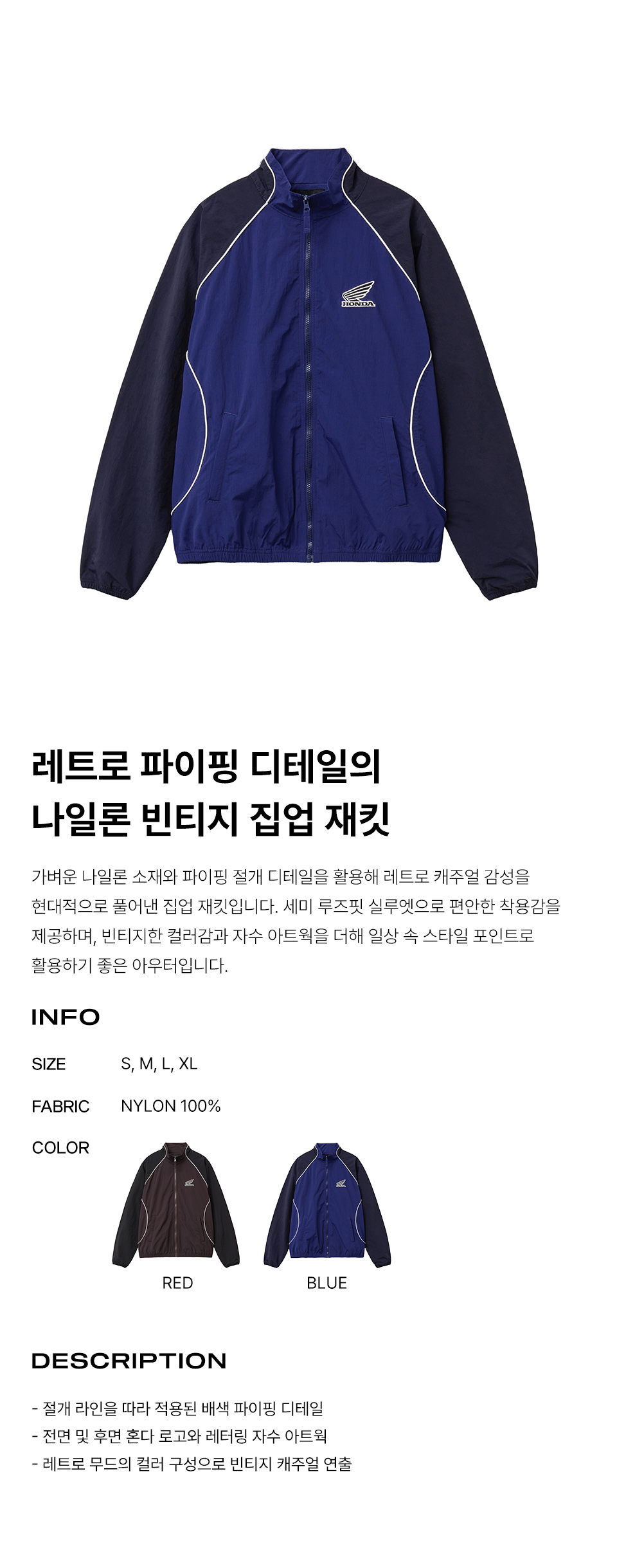 혼다 나일론 빈티지 컬러블록 트랙 재킷 블루