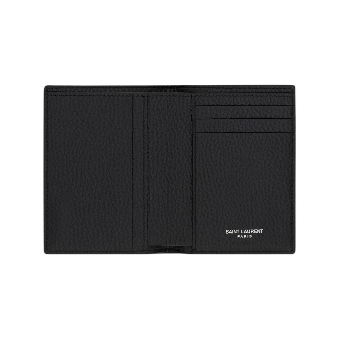 Saint Laurent Tiny Cassandre Credit Card Wallet in Grained Leather Black
