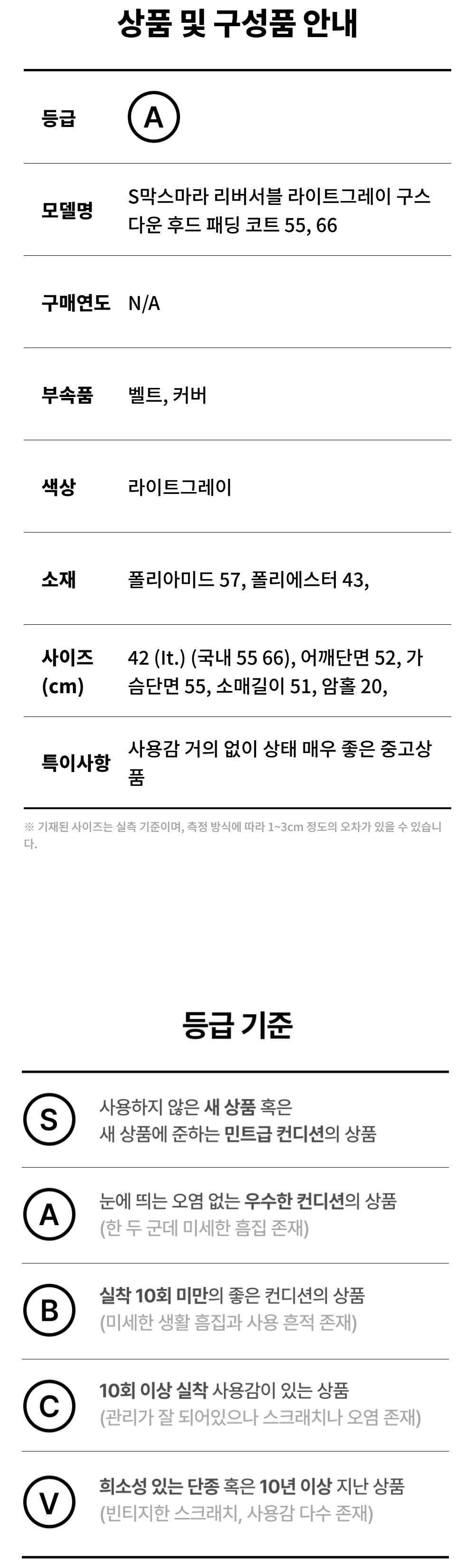 막스마라 리버서블 라이트그레이 구스다운 후드 패딩 코트 55, 66