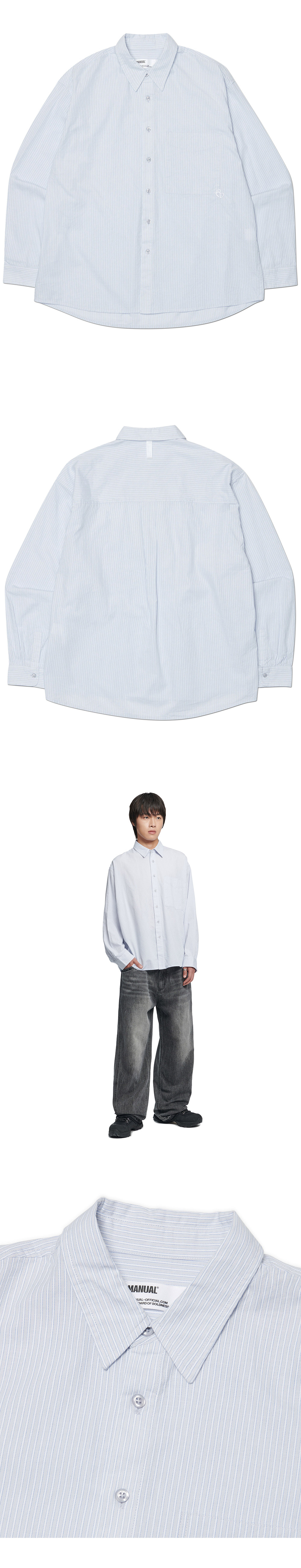 MODEL MAN : 180CM (L SIZE) COTTON 100% * 두꺼운 폴리백 특성상 옷에 슬립제가 묻어나올 수 있습니다. 어두운 색 계열의 상품 구매시 보이는 슬립제는 불량의 사유가 아님을 알려드립니다. made in china / 2026.01
