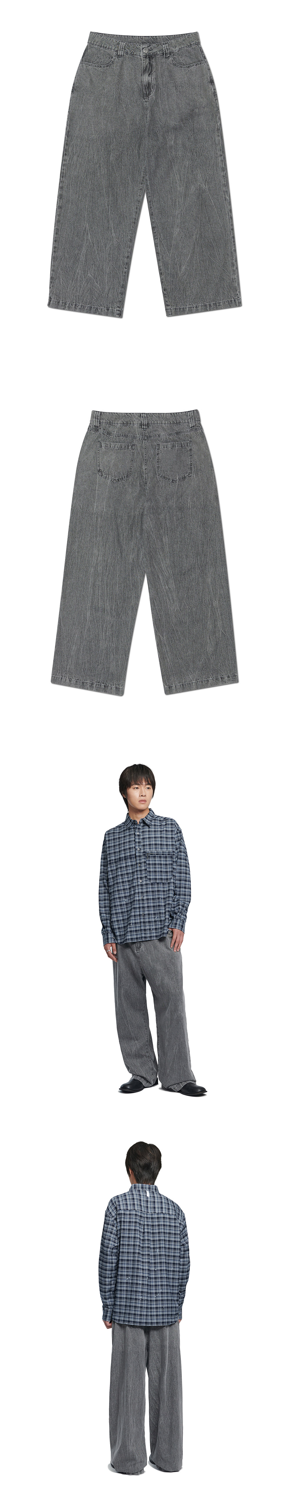 노매뉴얼 S.W 와이드 데님 팬츠 워시드 그레이