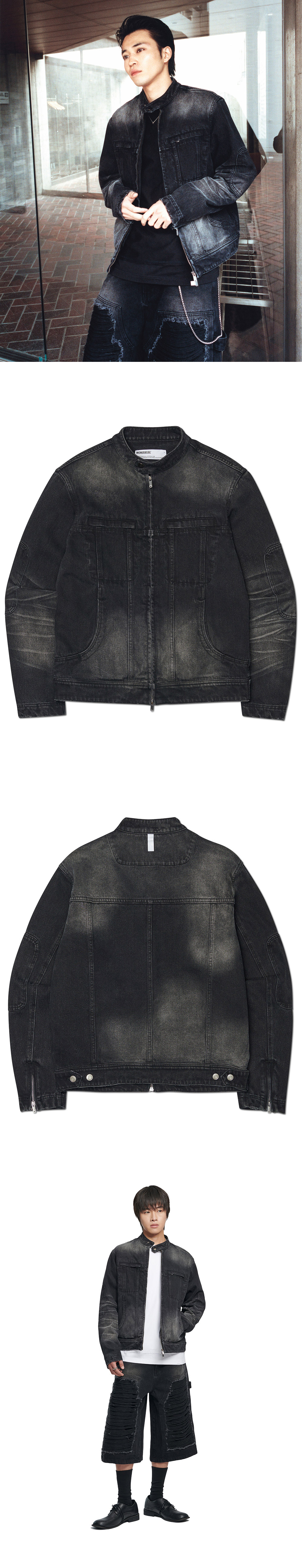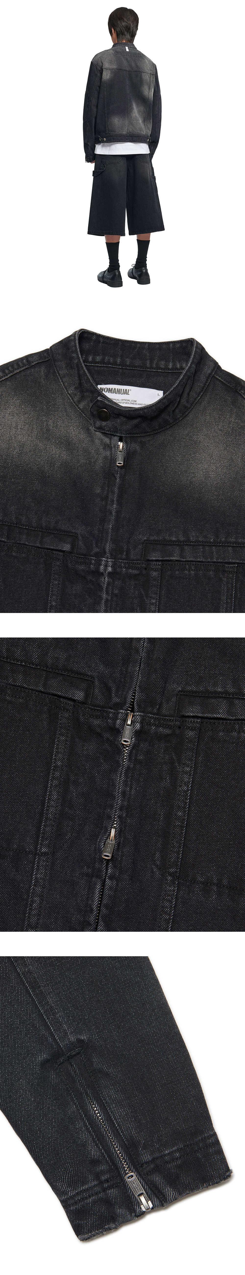 노매뉴얼 워시드 데님 라이더 자켓 워시드 블랙