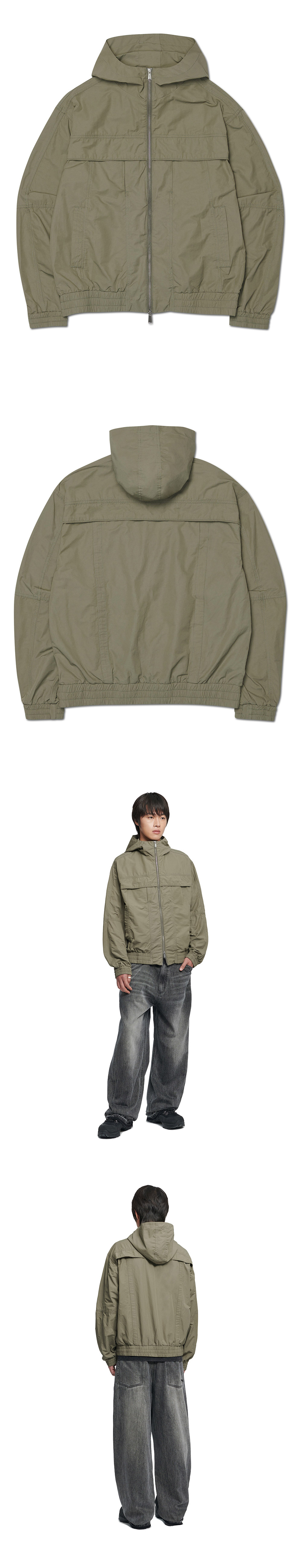 MODEL MAN : 180CM (L SIZE) COTTON 53% POLYESTER 47% WAIST BANDING 2WAY ZIPPER CHEST HIDDEN POCKET * 워싱 제품 특성상 개체 차이가 존재 합니다. * 두꺼운 폴리백 특성상 옷에 슬립제가 묻어나올 수 있습니다. 어두운 색 계열의 상품 구매시 보이는 슬립제는 불량의 사유가 아님을 알려드립니다. made in china / 2026.01