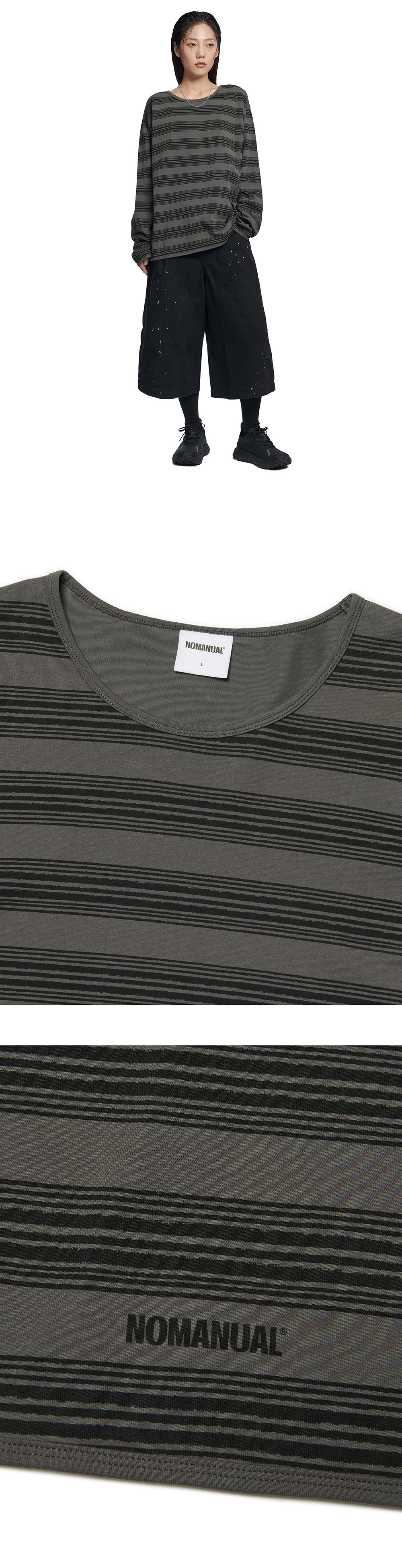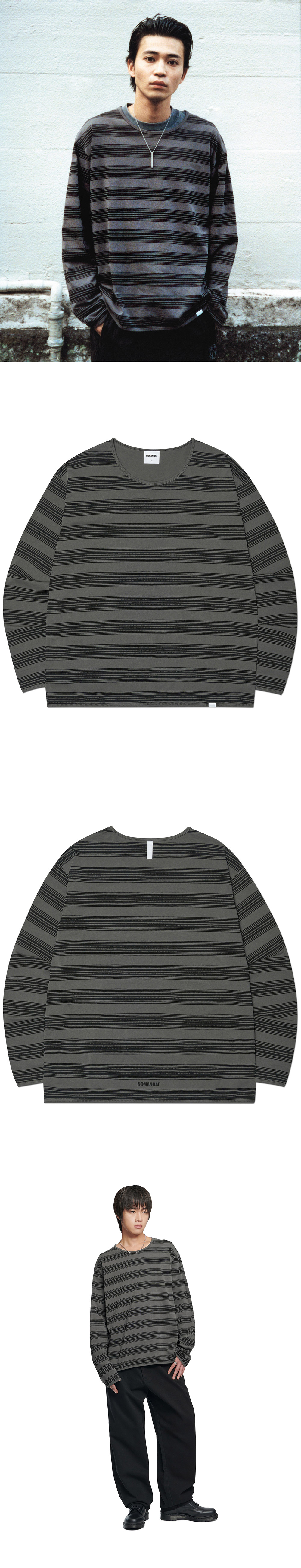 노매뉴얼 페인티드 스트라이프 롱 슬리브 티 블랙