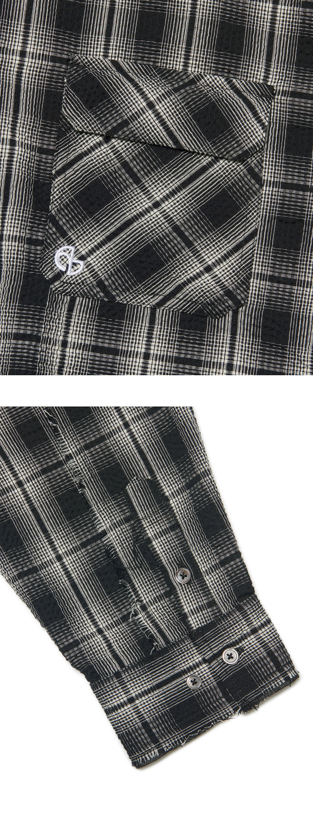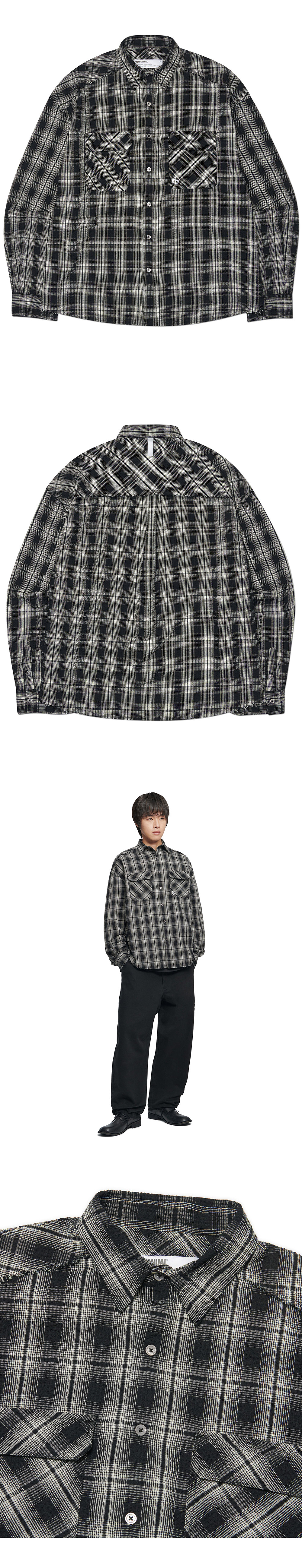 노매뉴얼 러프 시어서커 체크 셔츠 블랙