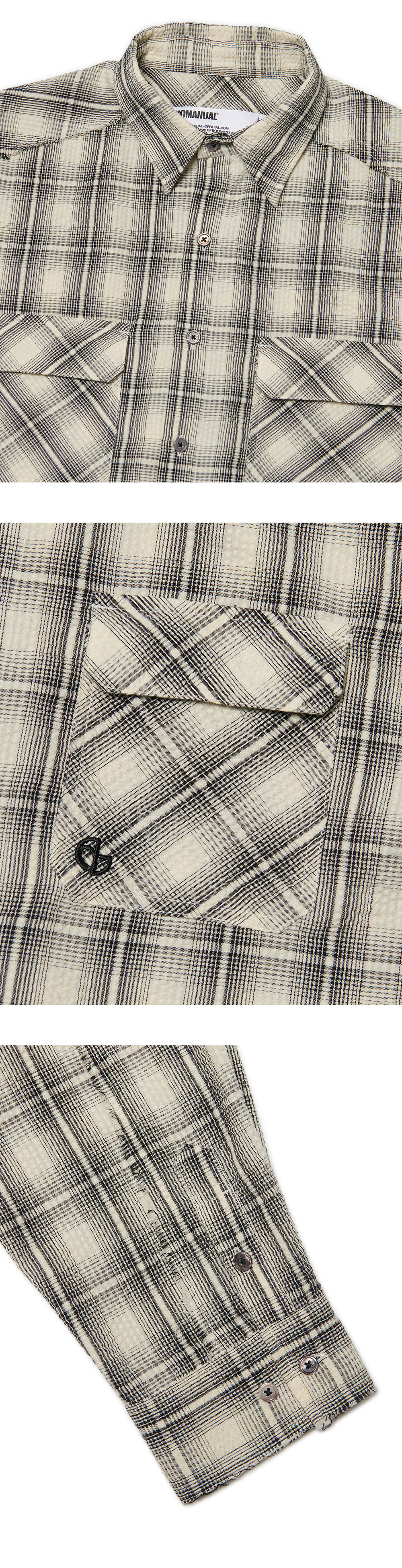 노매뉴얼 러프 시어서커 체크 셔츠 아이보리