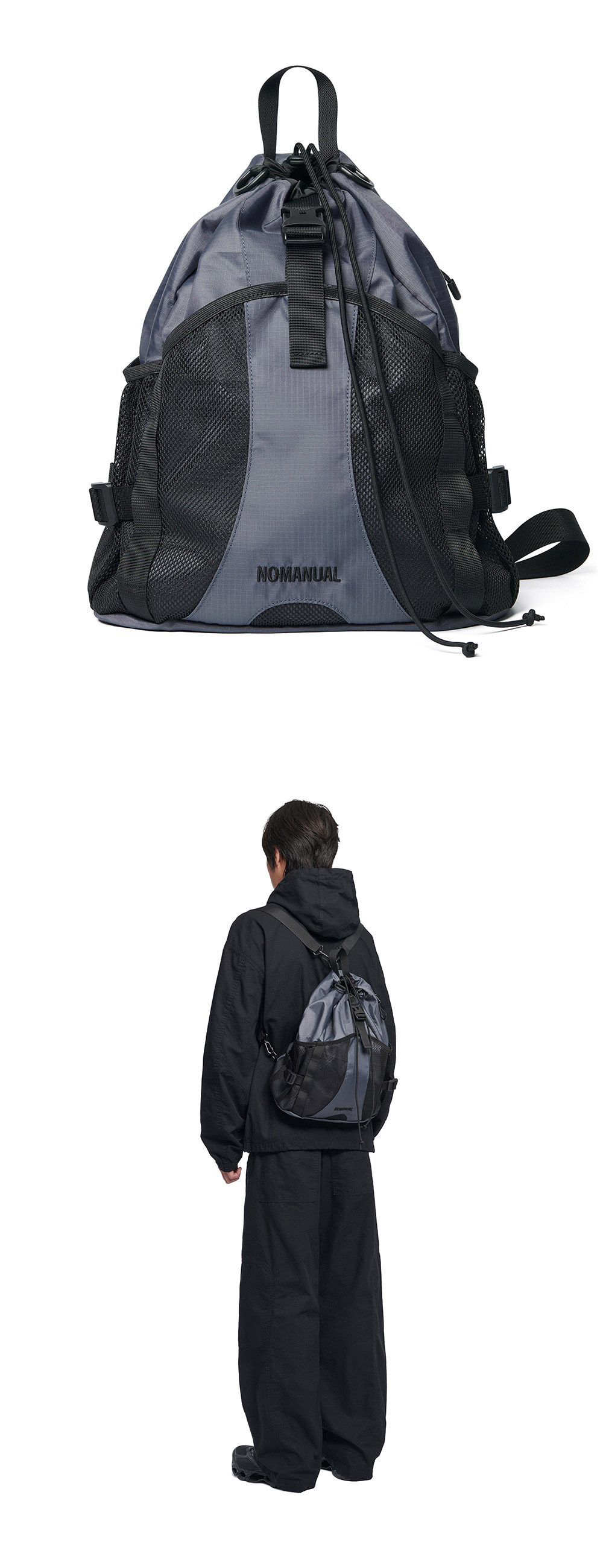 POLYESTER 100% ZIPPER (YKK社) * 두꺼운 폴리백 특성상 옷에 슬립제가 묻어나올 수 있습니다. 어두운 색 계열의 상품 구매시 보이는 슬립제는 불량의 사유가 아님을 알려드립니다. made in china / 2026.01