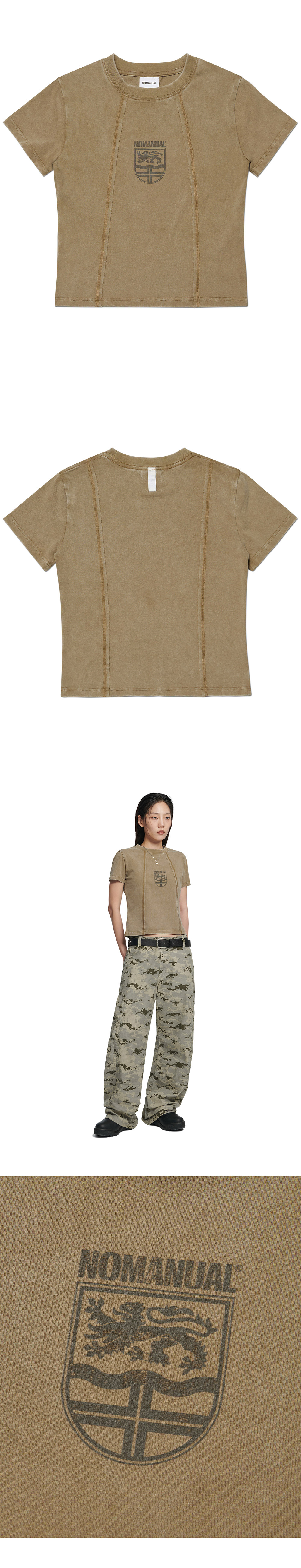 (W) NOMANUAL Dual Slash Emblem T-Shirt Washed Brown
