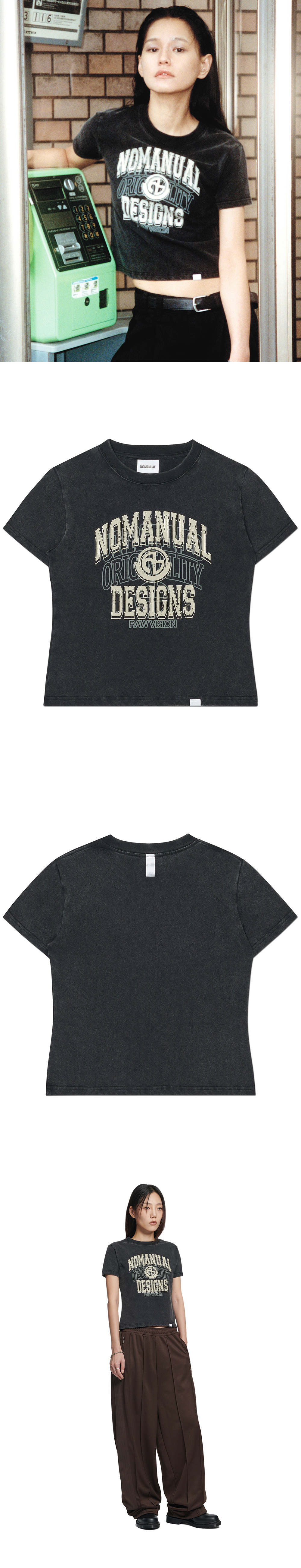 (W) 노매뉴얼 레이어드 아치 그래픽 티셔츠 워시드 블랙