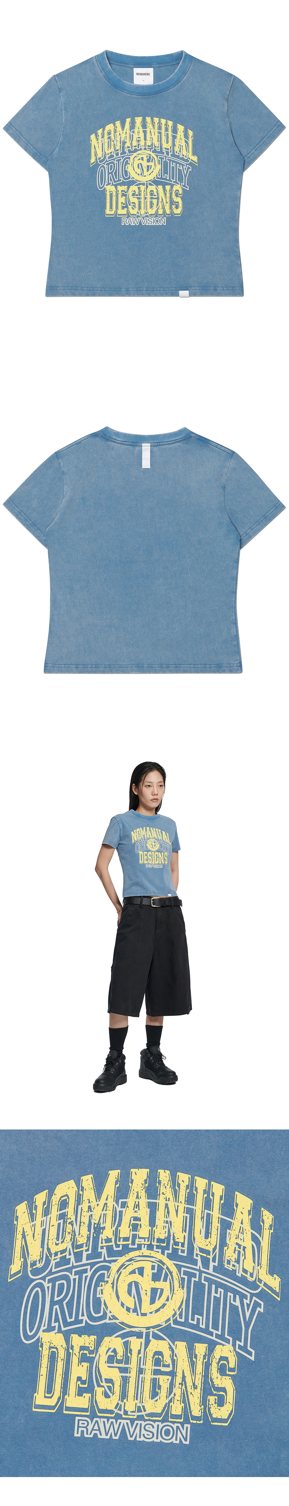(W) NOMANUAL Layered Arch Graphic T-shirt Washed Navy