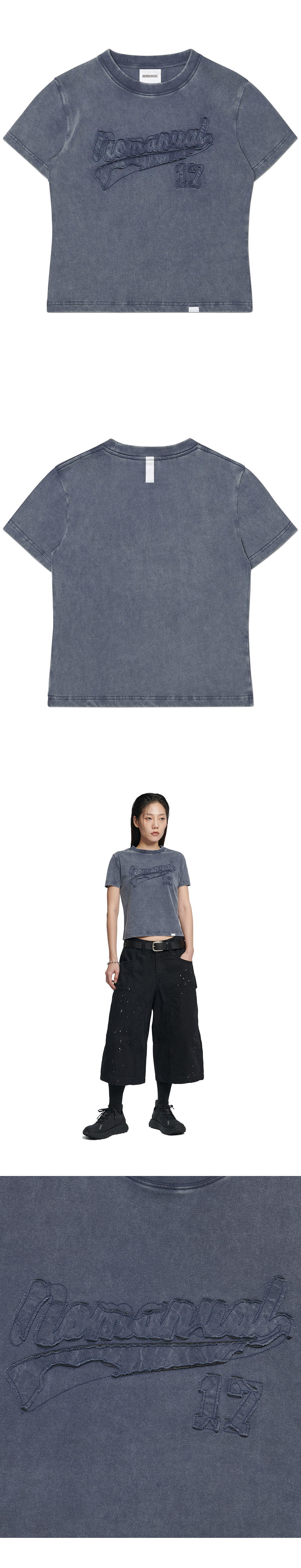 (W) 노매뉴얼 아플리케 티셔츠 워시드 네이비