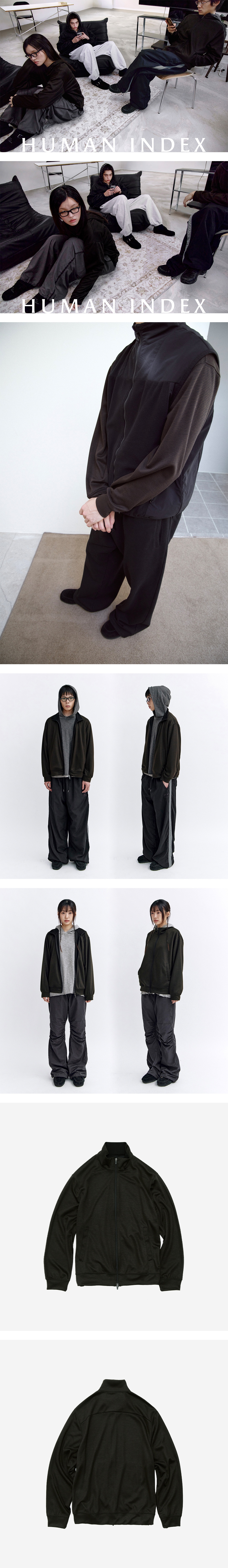 폴리테루 휴먼인덱스 휴먼 스트라이프 트랙 탑 자켓 카키 블랙