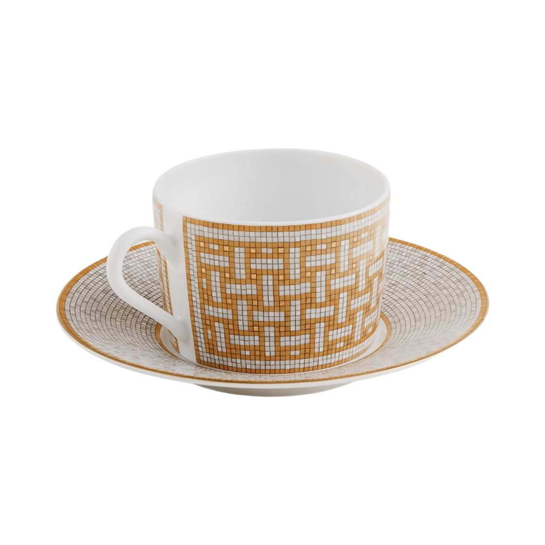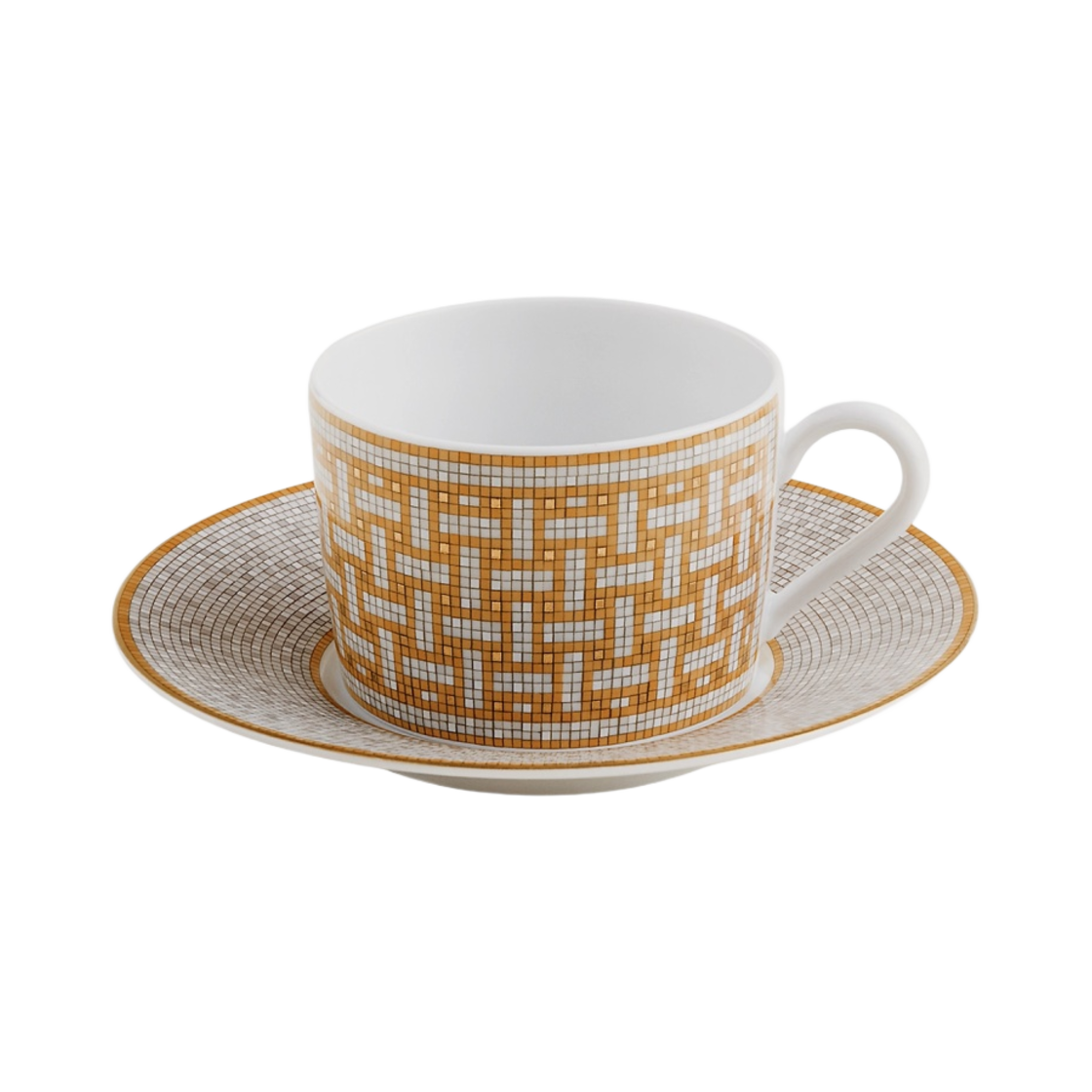 Hermes Mosaique Au 24 Tea Cup & Saucer Gold (Set of 2)