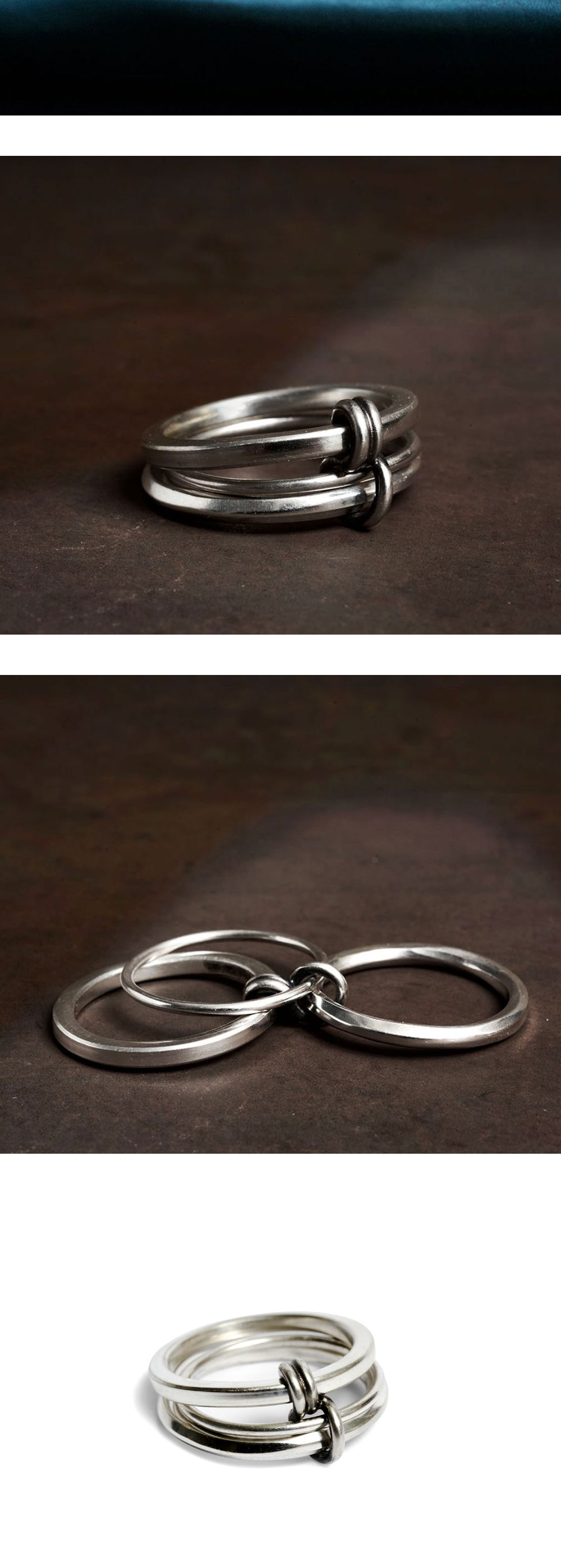 베르크슈타트 뮌헨 커넥티드 링 인피니티 실버 입니다. - 무한대의 상징인 숫자 8을 따라 뻗어 있음 - 사각형 반지, 섬세한 원형 반지, 그리고 단조 반지를 연결함 - 각 반지는 수작업으로 제작됨