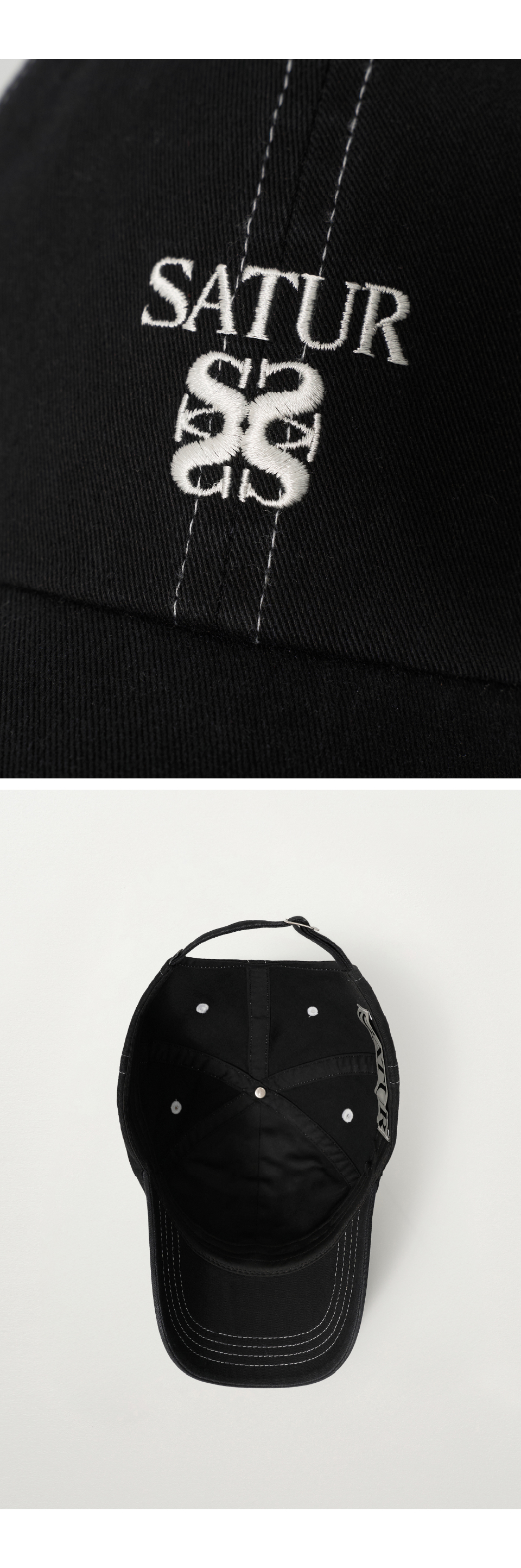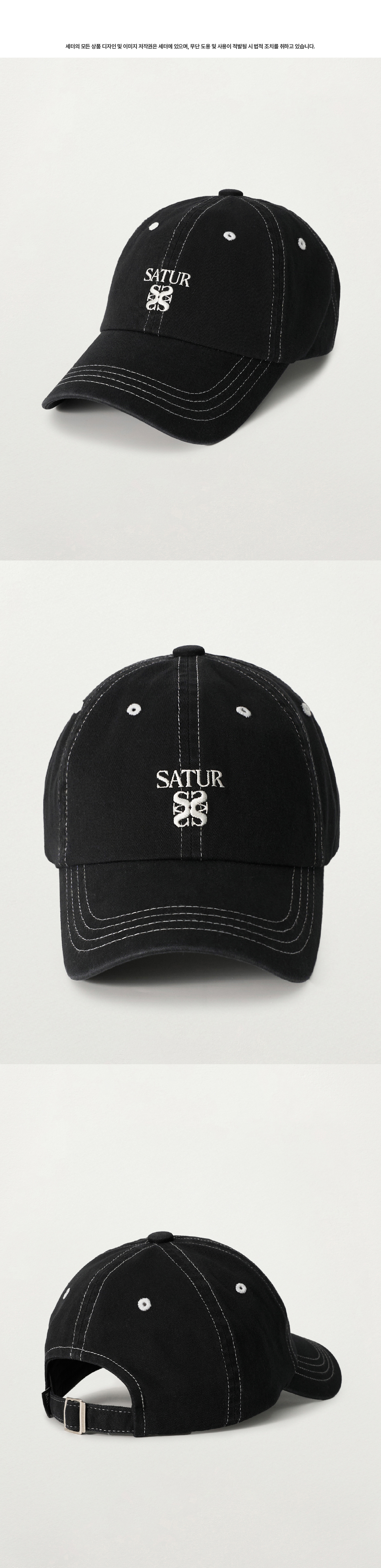 SATUR Contrast Color Stitch Dyed Ball Cap Black
