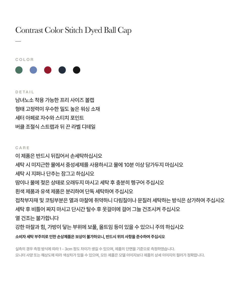 세터 콘트라스트 컬러 스티치 다이드 볼캡 블랙