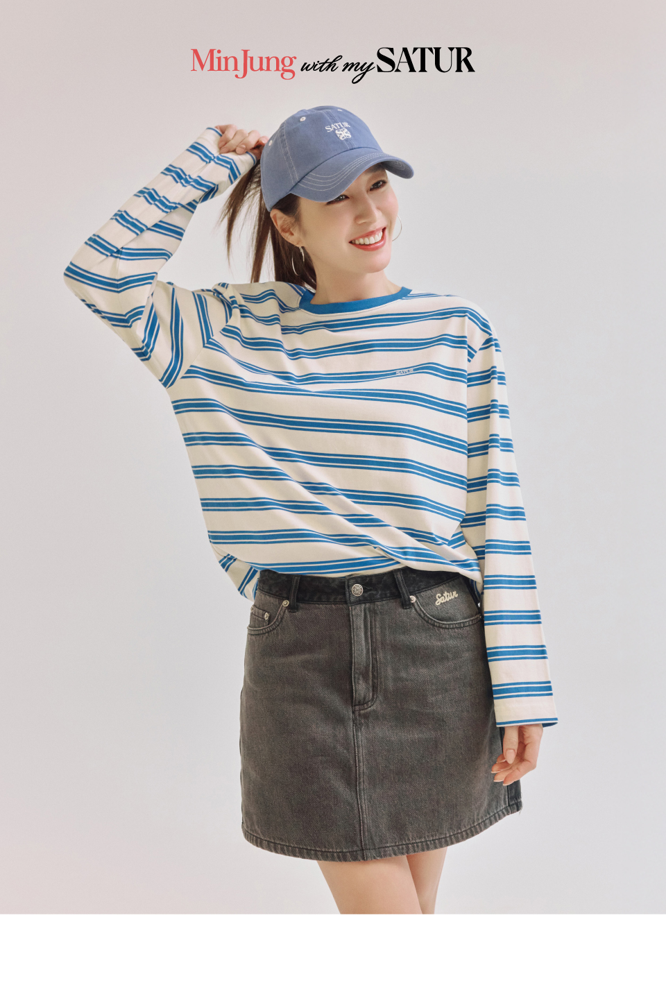 세터 콘트라스트 컬러 스티치 다이드 볼캡 블루
