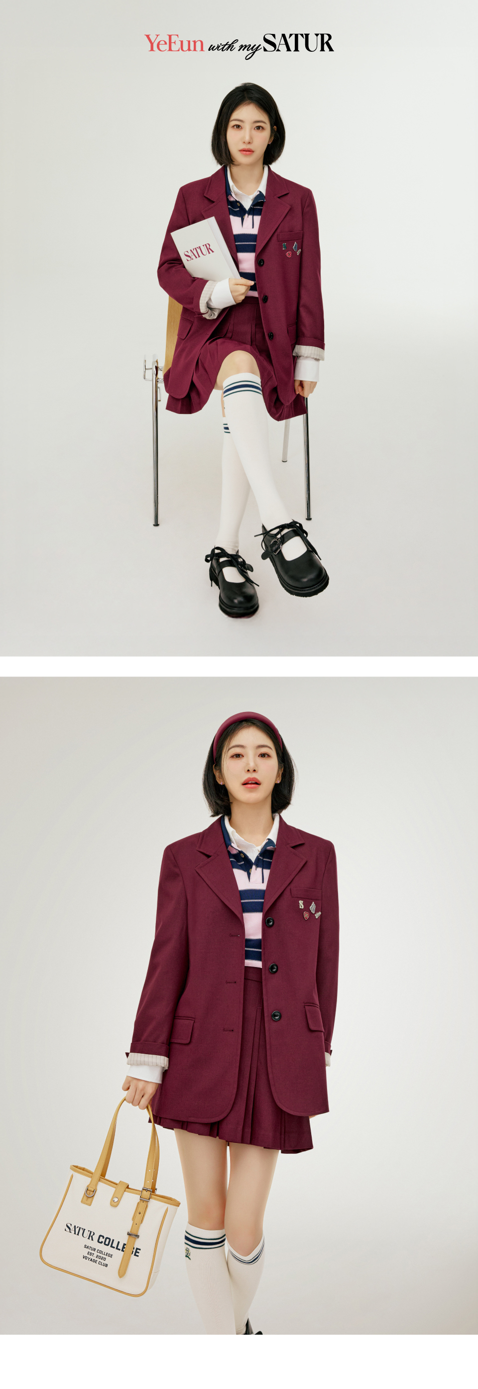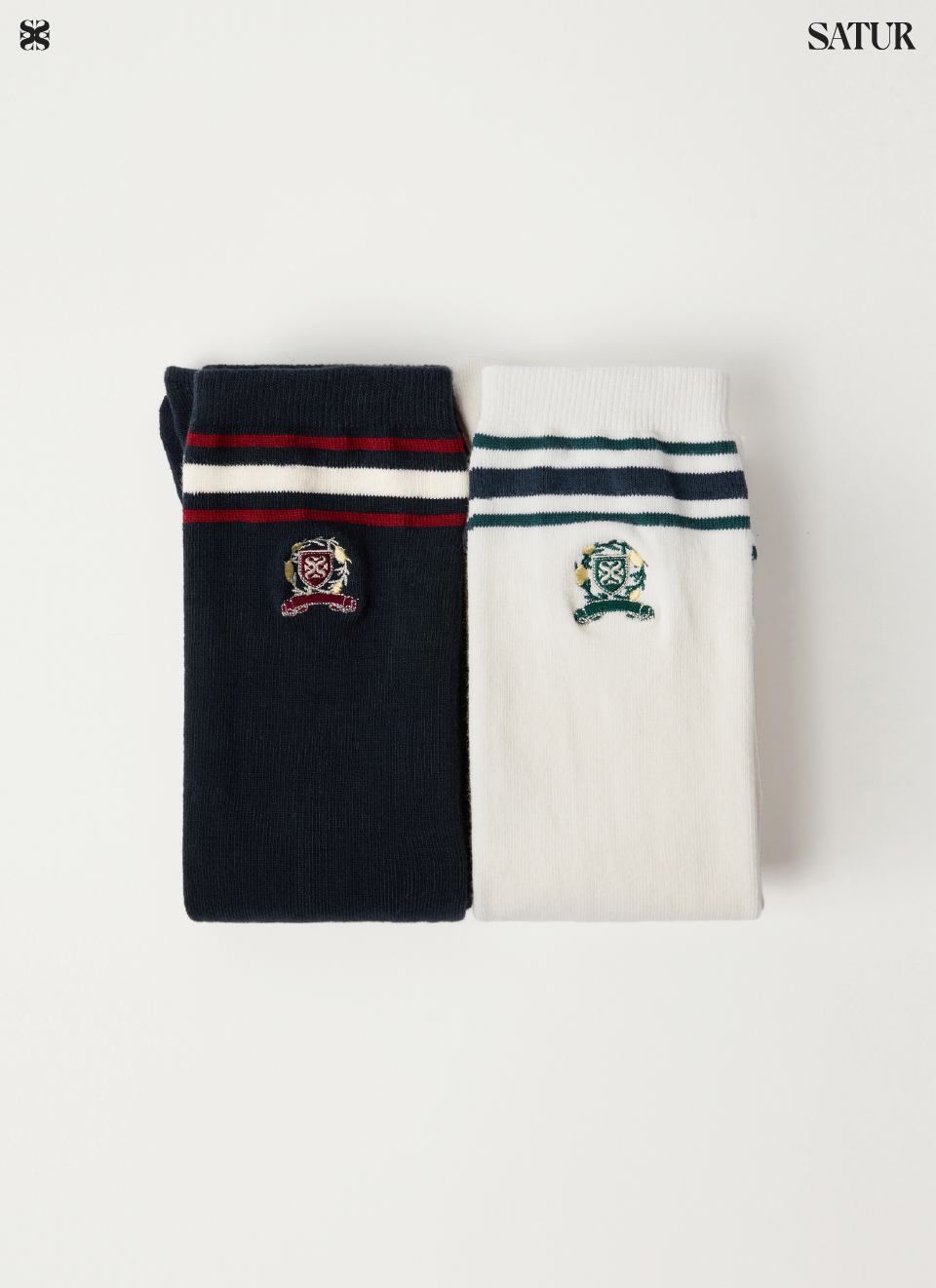 SATUR W Crest Logo Knee Socks Cream