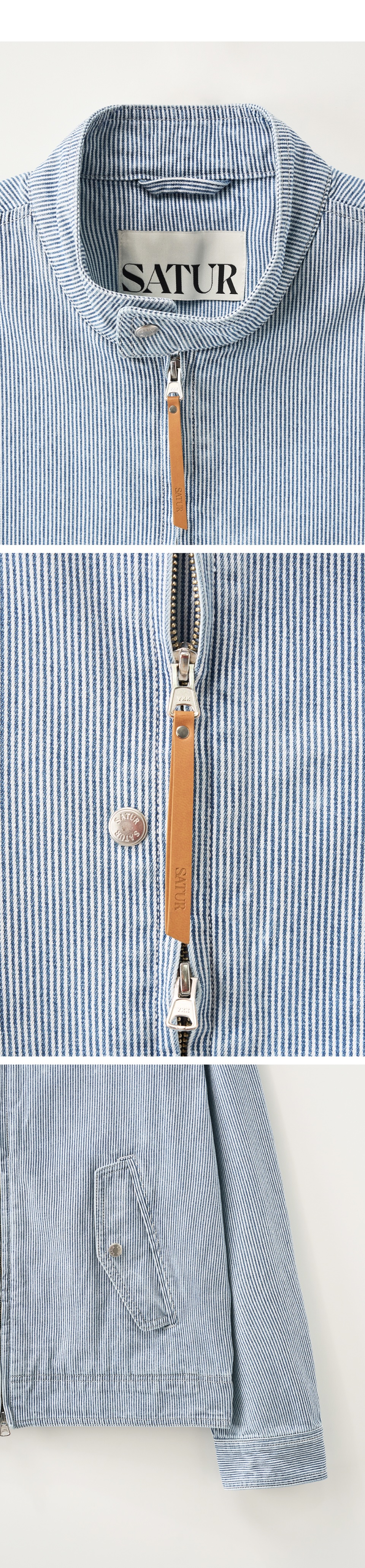 [사은품 증정] SATUR Stripe Denim Harrington Jacket Light Blue
