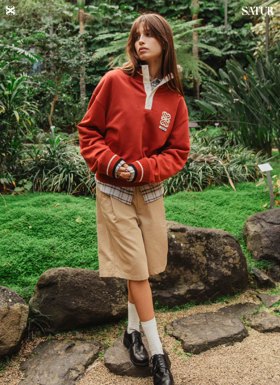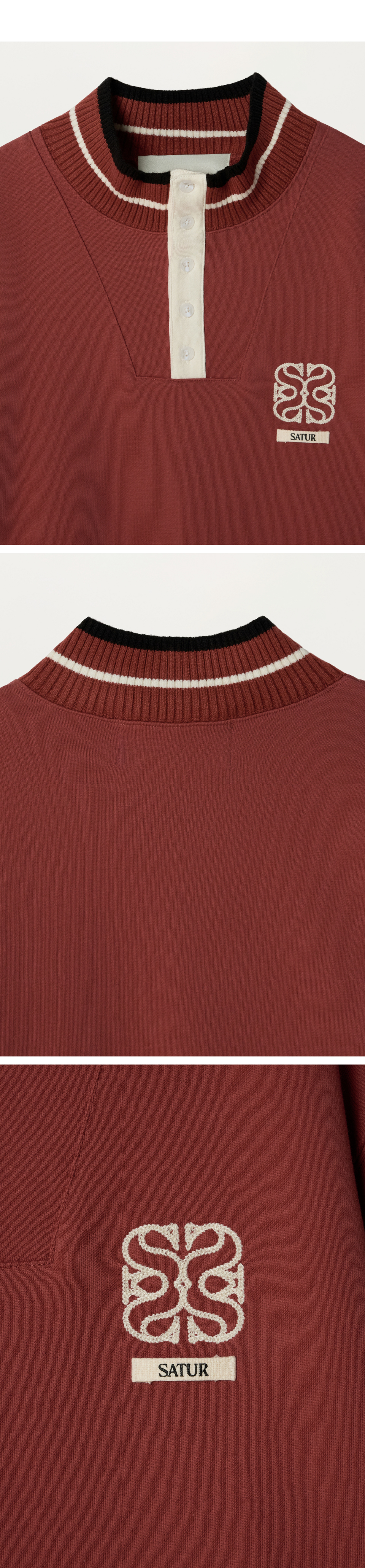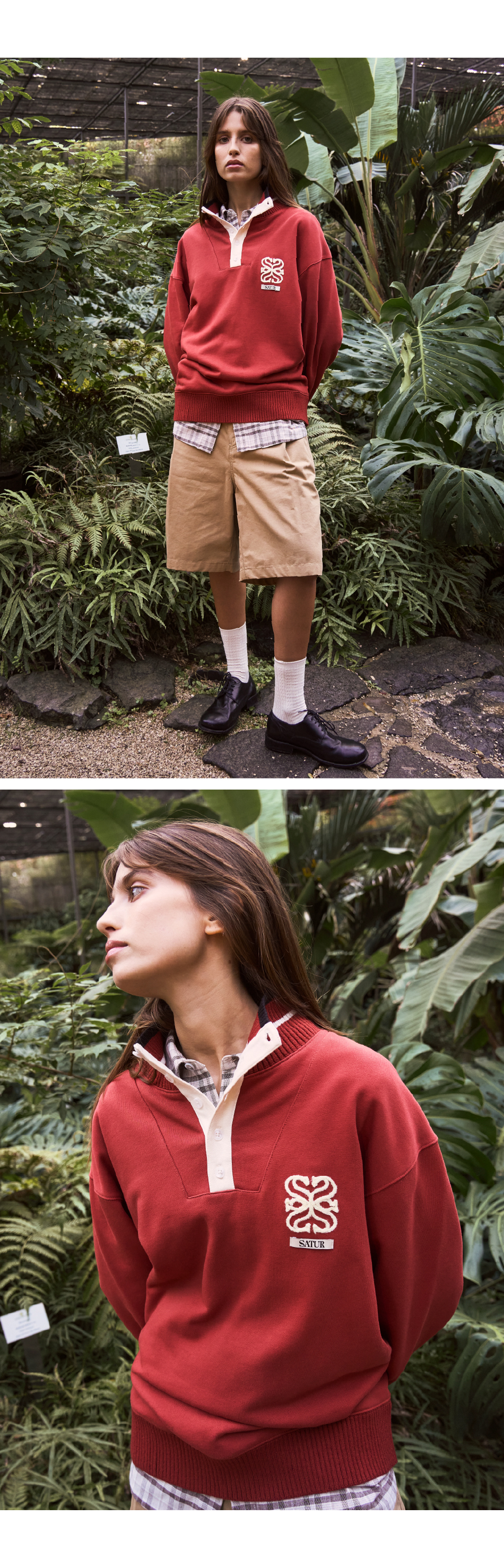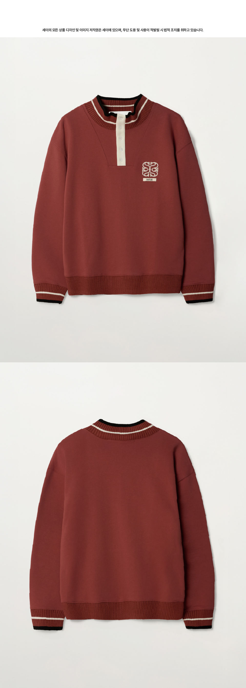 세터 립 포인트 오픈 칼라 스웨트셔츠 레드