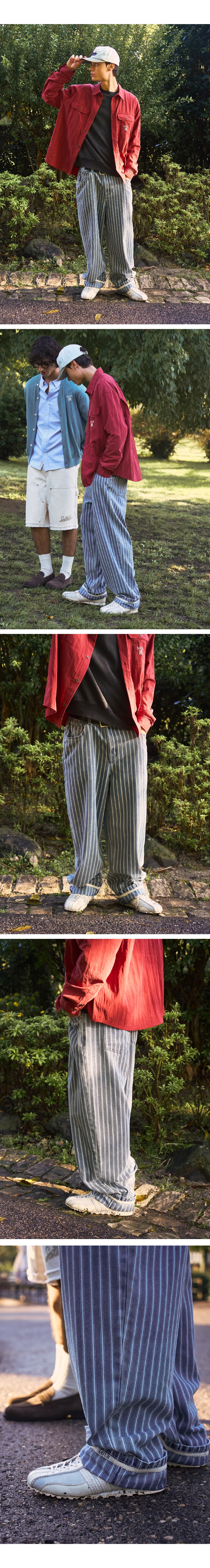 [사은품 증정] SATUR Stripe Denim Roll Up Pants Blue