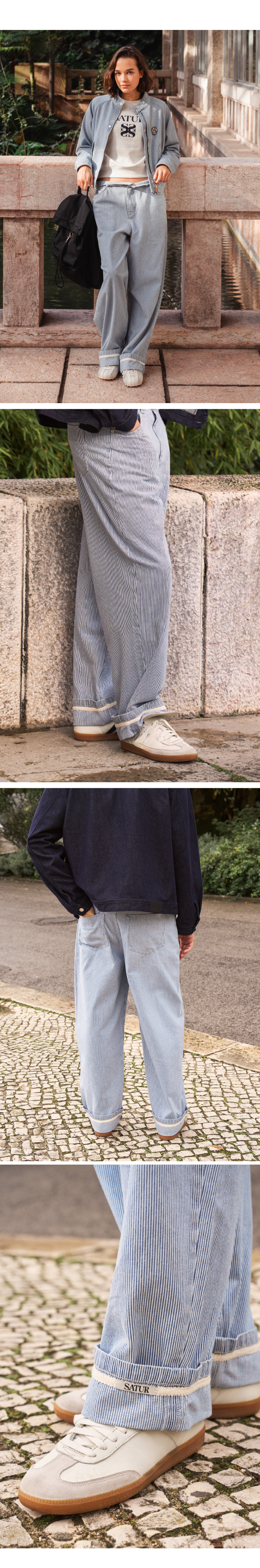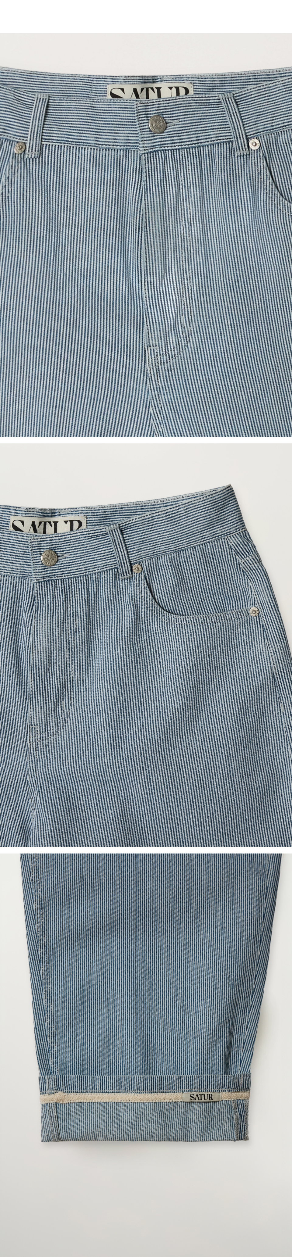 [사은품 증정] SATUR Stripe Denim Roll Up Pants Light Blue