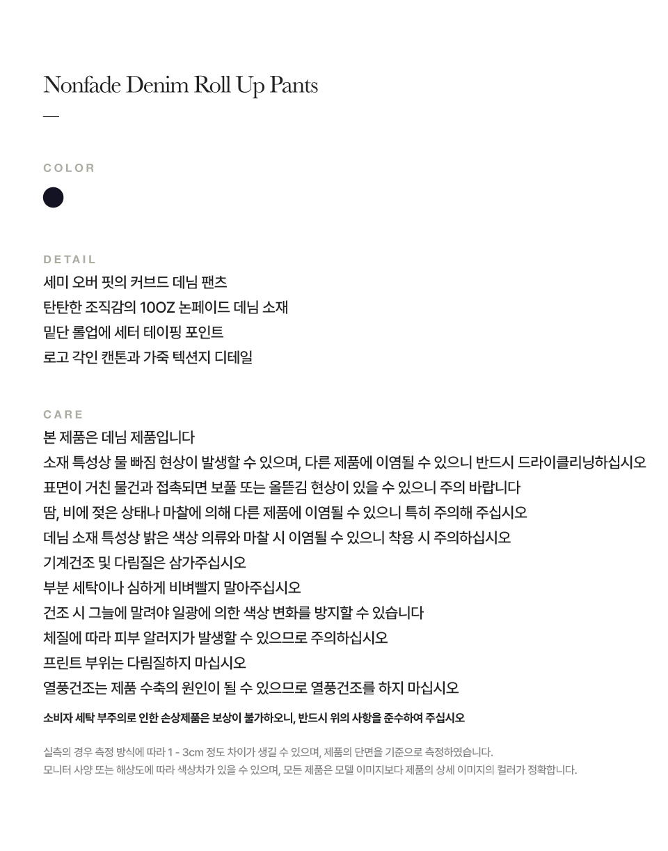 [사은품 증정] 세터 논페이드 데님 롤업 팬츠 인디고