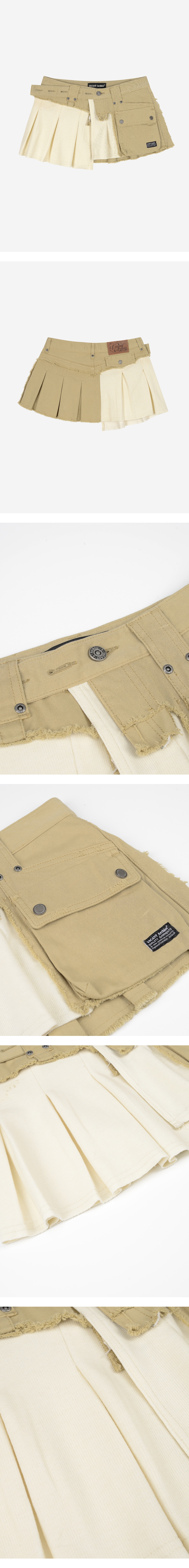 허리 사이즈 조절이 가능해 남녀 모두 착용 가능한 레이어드 스커트 벨트 전면 입체 포켓 디테일로 실용성과 디자인 포인트 강화 플리츠 스커트 부분 배색 디테일로 구조적인 실루엣 연출 밝은 컬러 특성상 이염에 주의 필요 FREE (CM) Length : 31 Waist : 38.5-49.5 Model is 174cm and is wearing a size S