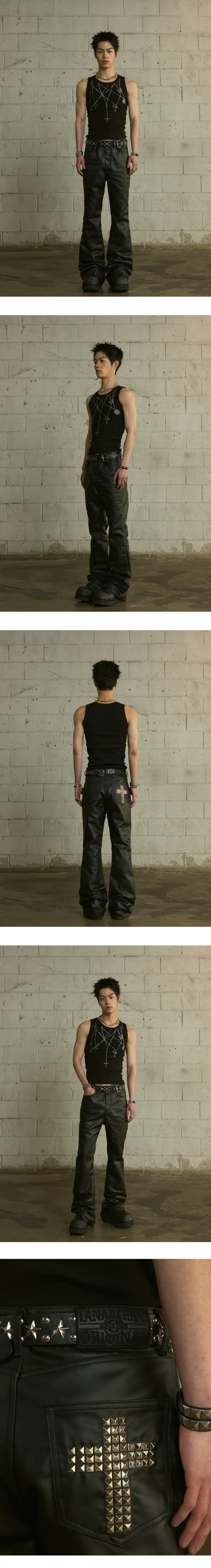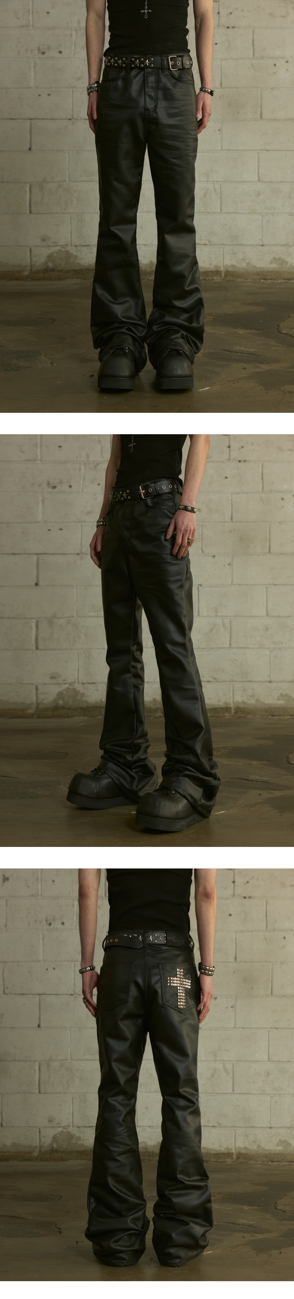 LAN ARCHIVE 0125 Cross Stud Leather Pants - Black