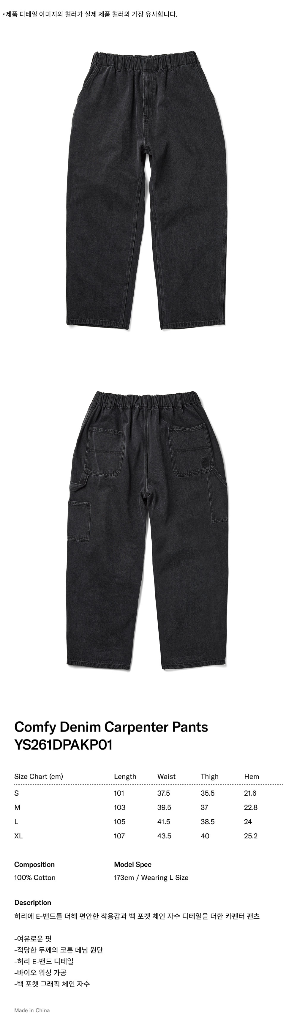 [더블적립] YESEYESEE Comfy Denim Carpenter Pants Black