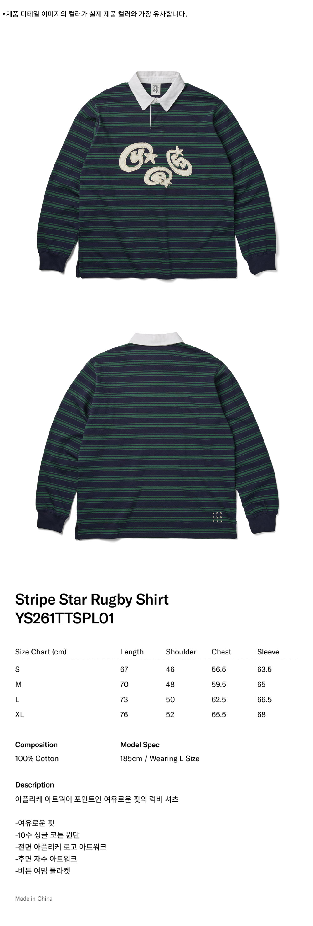 [더블적립] 예스아이씨 스트라이프 스타 럭비 셔츠 그린