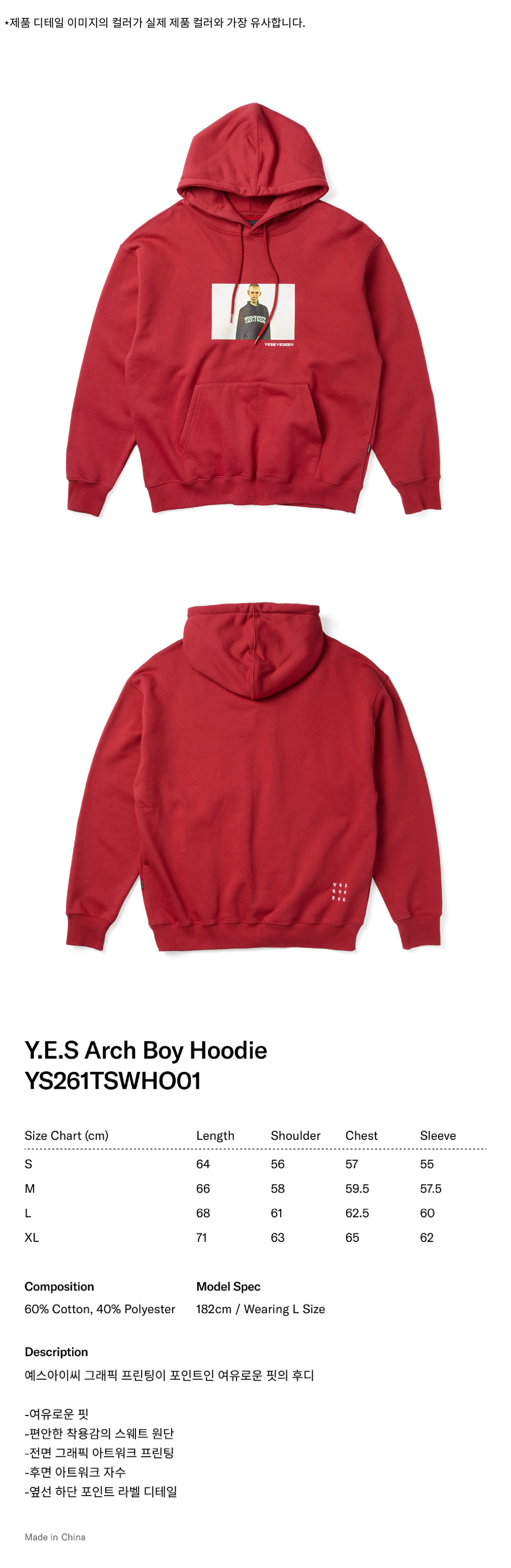 [더블적립] 예스아이씨 예스 아치 보이 후디 레드
