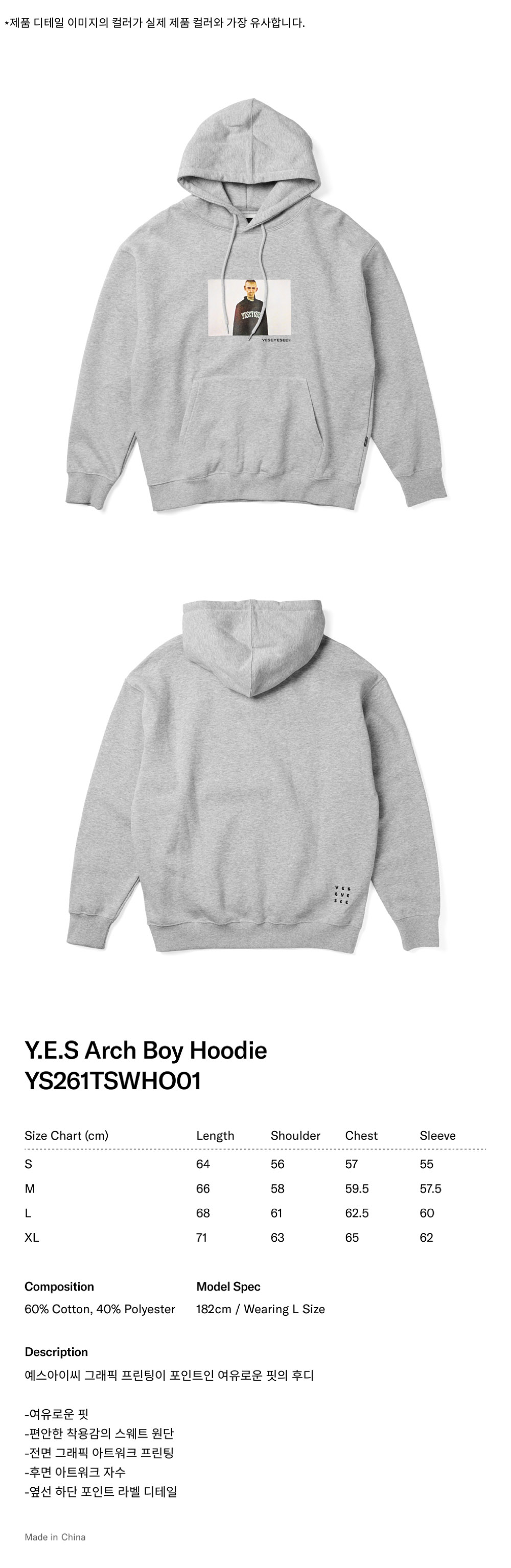[더블적립] 예스아이씨 예스 아치 보이 후디 그레이