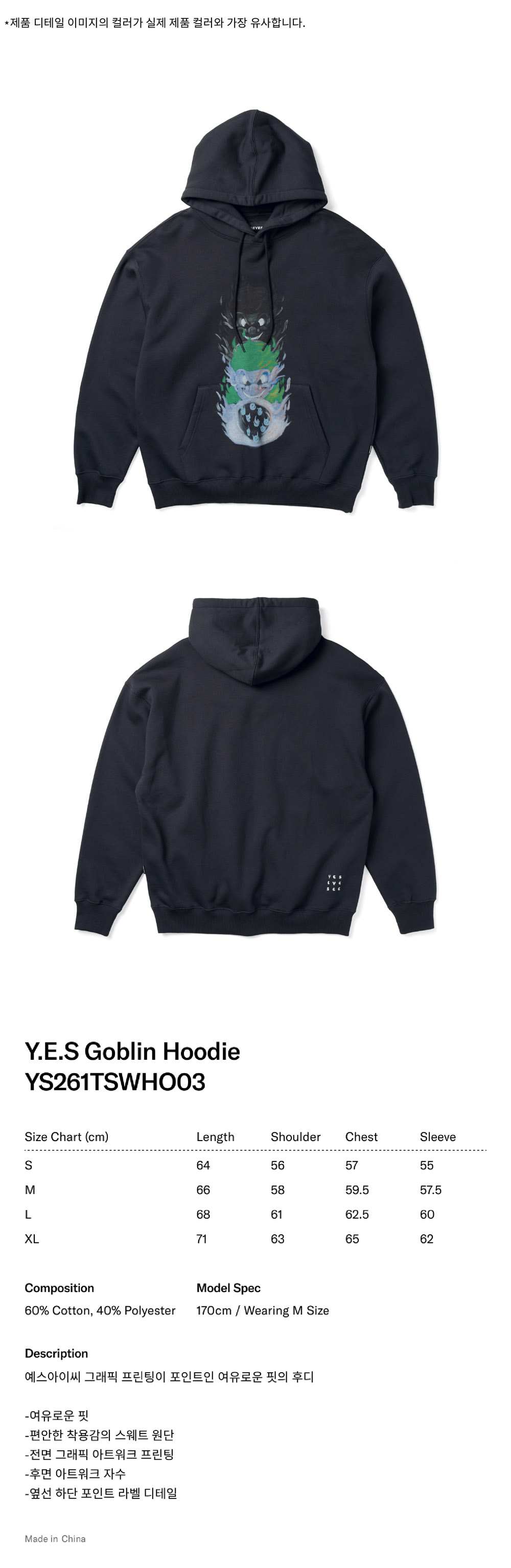 [더블적립] YESEYESEE Y.E.S Goblin Hoodie Charcoal