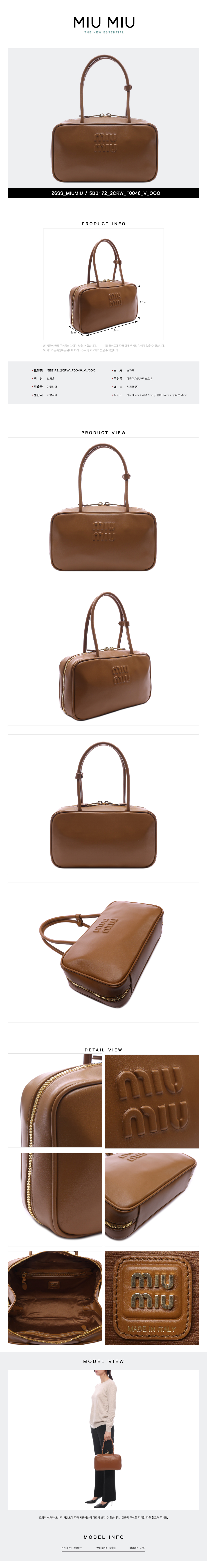 [20% 쿠폰] 미우 미우 보 레더 탑 핸들 백 꼬냑