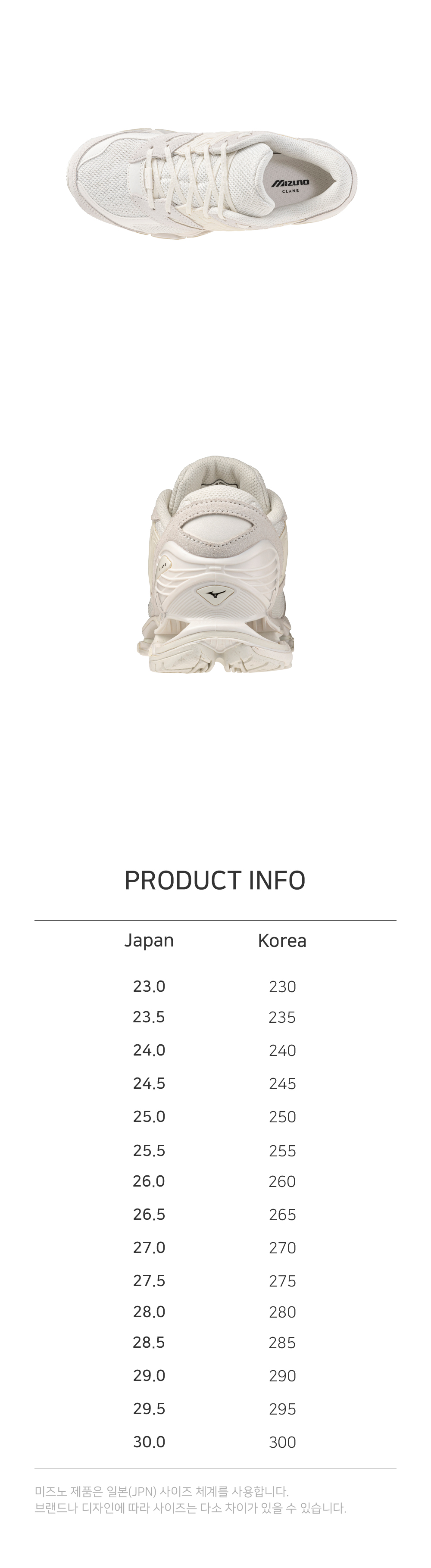 일본 브랜드 CLANE와 협업해 제작된 스포츠스타일화로, 프로페시 라이프스타일(LS)를 적용해 미즈노의 기술력을 경험할 수 있는 디자인이 특징인 상품입니다.