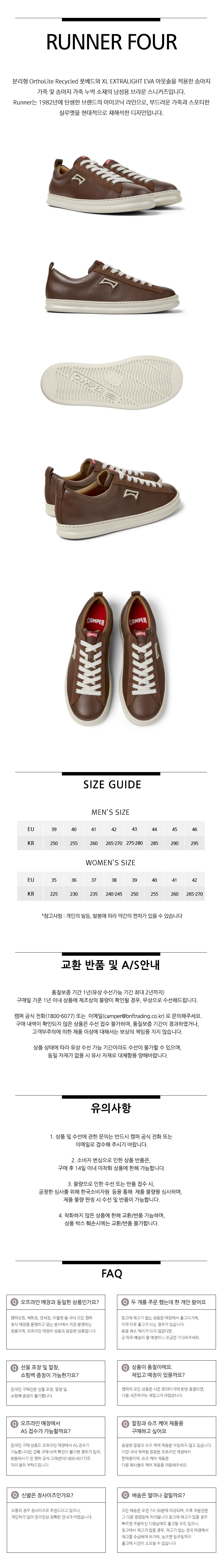 캠퍼 남성 러너 포 스니커즈 브라운