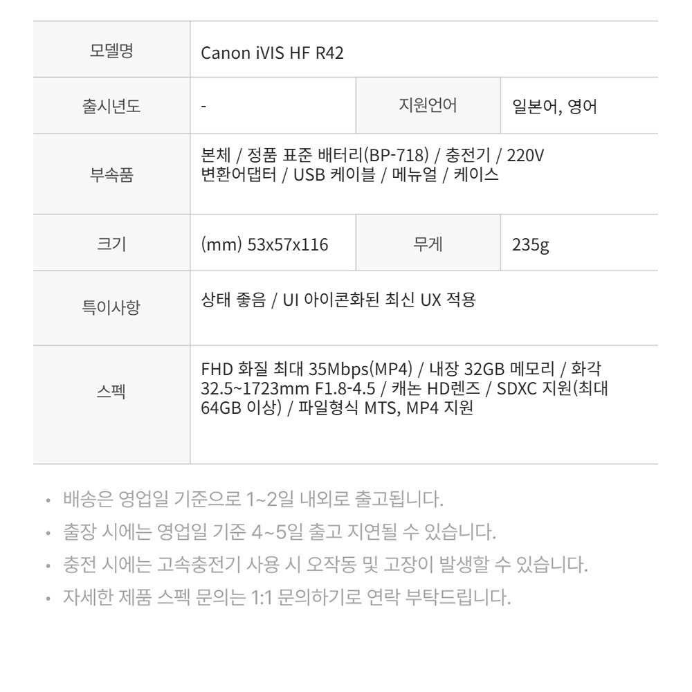 캐논 캠코더 아이비스 HF R42 화이트