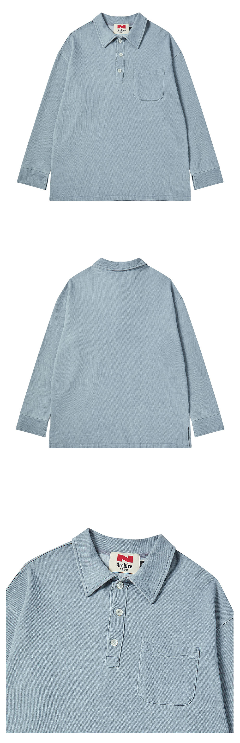엔 아카이브 90's 아카이브 피케 스웨트 셔츠 워시드 블루