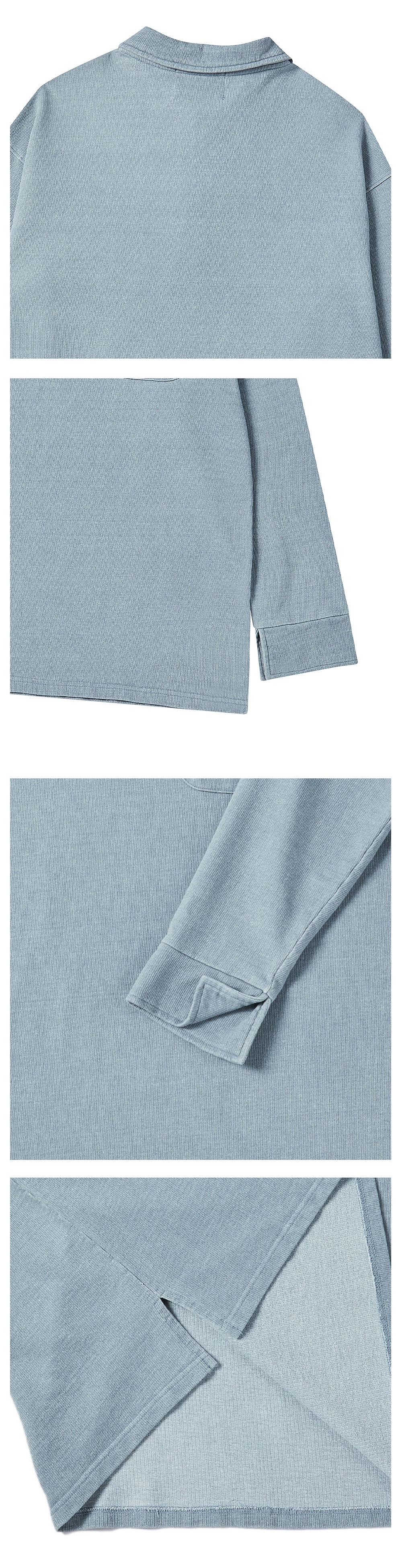 ㆍ빈티지한 무드의 카라 디테일이 더해진 롱 슬리브 톱 ㆍ90년대 빈티지에서 영감받은 가공감과 유니크한 조직감의 자가드 코튼 소재 사용 ㆍ천연 자개 단추를 적용해 은은한 고급스러움 강조 ㆍ피그먼트 가공과 바이오 워싱을 거쳐 깊이 있는 빈티지 컬러와 촉감 완성 ㆍ고중량 코튼 원단 사용으로 안정적인 착용감과 탄탄한 실루엣 제공 ㆍ원단 단계에서 텐타·덤블 워싱 가공을 적용해 세탁 후 수축과 형태 변형 최소화 ㆍ유니섹스 제품으로, 여성 착용 시 자연스러운 오버핏 연출