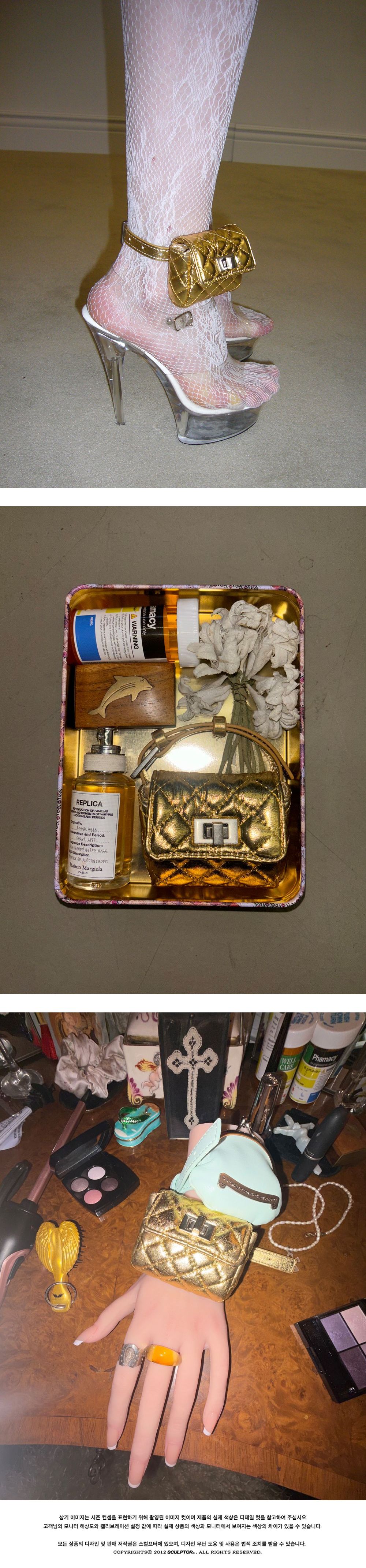 [INFORMATION] OUTSHELL : POLYESTER 55% POLYURETHANE 45% LINING : POLYESTER 100% MANUFACTURE : SCULPTOR / CHINA [SIZE GUIDE] F : Width 7 / Length 6 / Depth 3 / Strap 31 *There may be 1-2cm difference depending on the measurement location and individual. (Unit : cm) [LAUNDRY TIP] Dry-cleaning as well as washing should not be conducted as it could cause damages such as shrinkage or distortion of the products. If necessary, gently wipe off with a damp cloth. Refer to the laundry label for any further details.