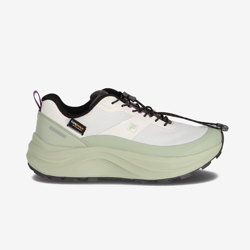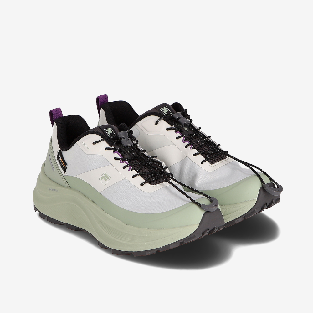 FILA 러닝 퍼포먼스 FLOAT 라인업의 트레일 러닝화입니다.내구성이 강한 코듀라 소재가 적용되었고, 발수 처리를 통하여 생활방수 수준의 WATERPROOF 기능을 제공합니다.반발력이 우수한 SKYFOAM VETTA 미드솔이 적용되었으며, 돌기 형태의 에버그립 아웃솔로 다양한 지면에서 우수한 접지력을 느낄 수 있습니다.또한, 스토퍼 레이싱 시스템이 적용되어 손쉽게 핏팅감을 조절할 수 있습니다.