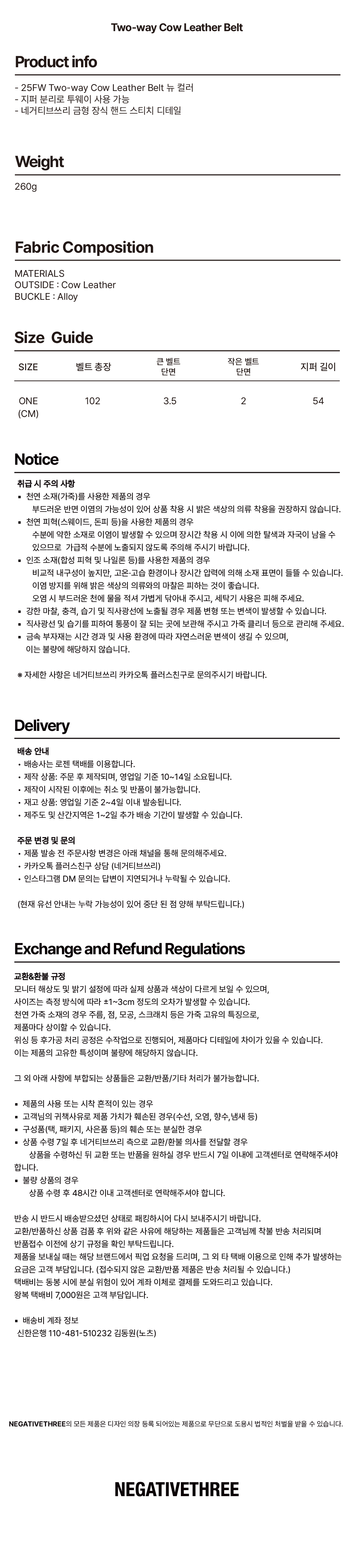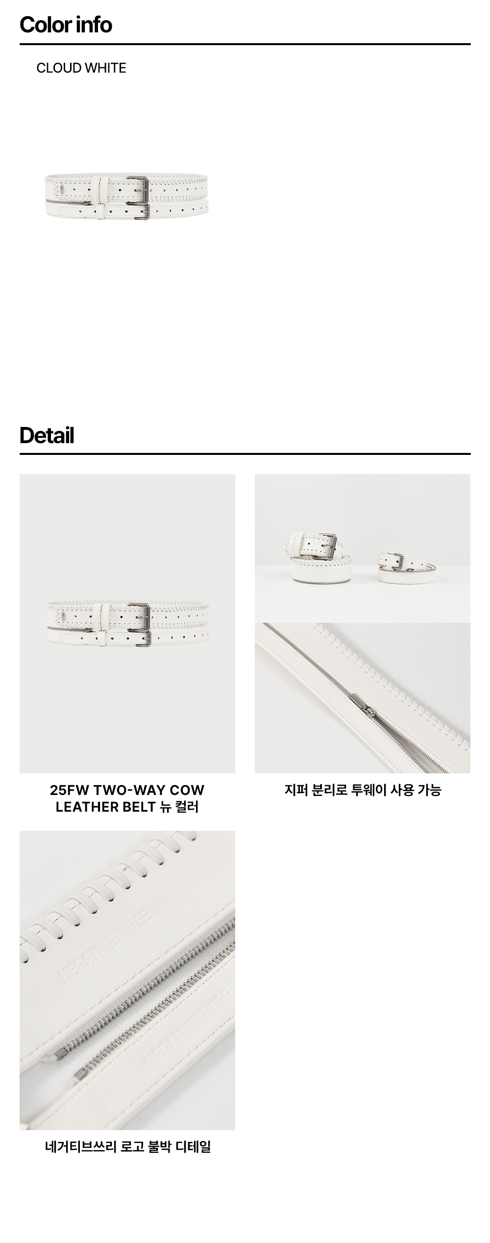 네거티브쓰리 투웨이 카우 레더 벨트 클라우드 화이트