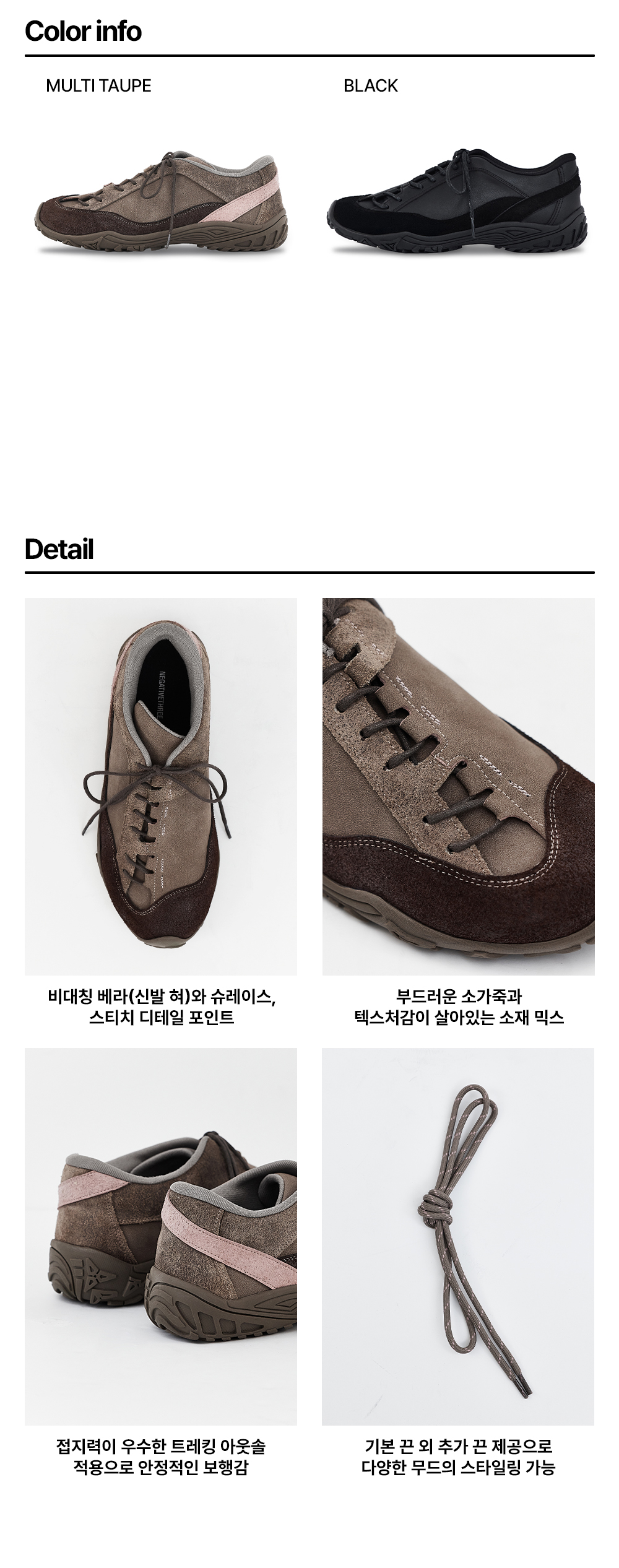 네거티브쓰리 커브드 레이스 No.2 스니커즈 멀티 타우페