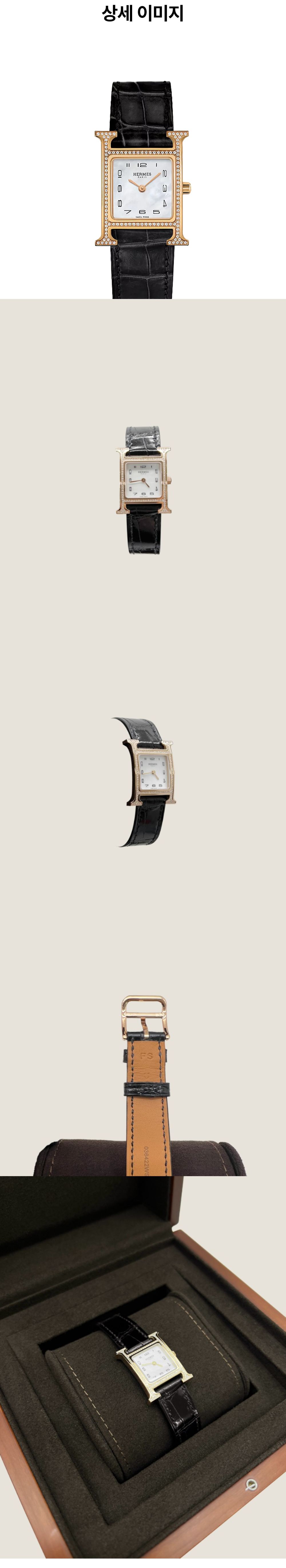 에르메스 H아워 베젤 다이아 블랙 엘리게이터 로즈골드 U각인