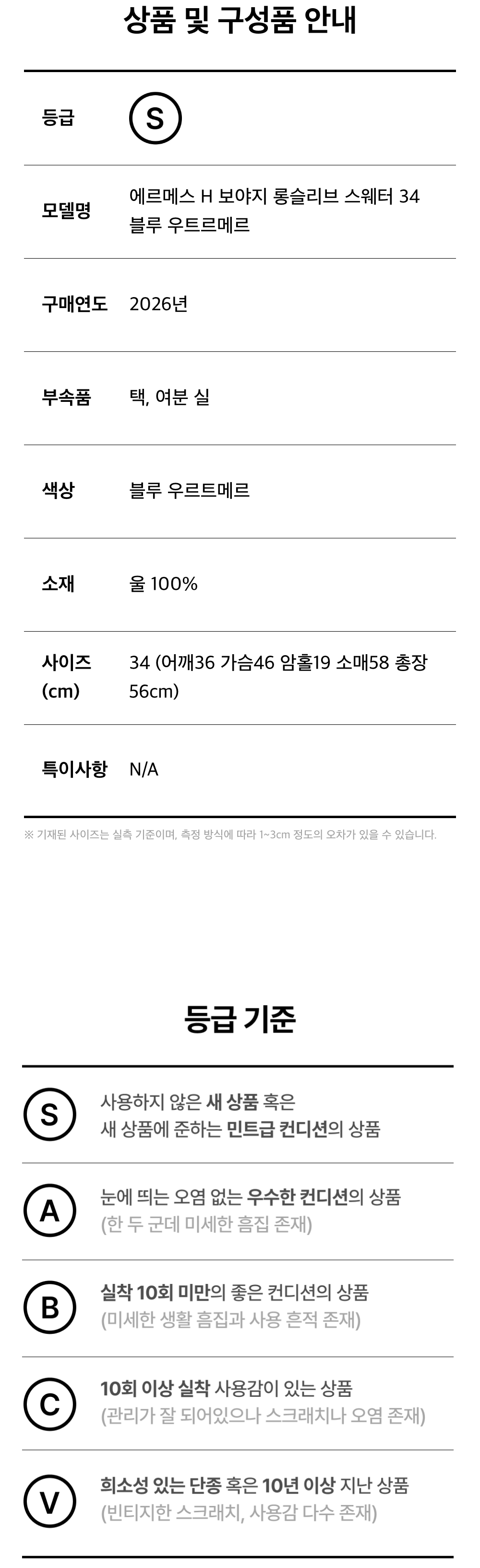 에르메스 H 보야지 롱슬리브 스웨터 34 블루 우트르메르(6HA0208)