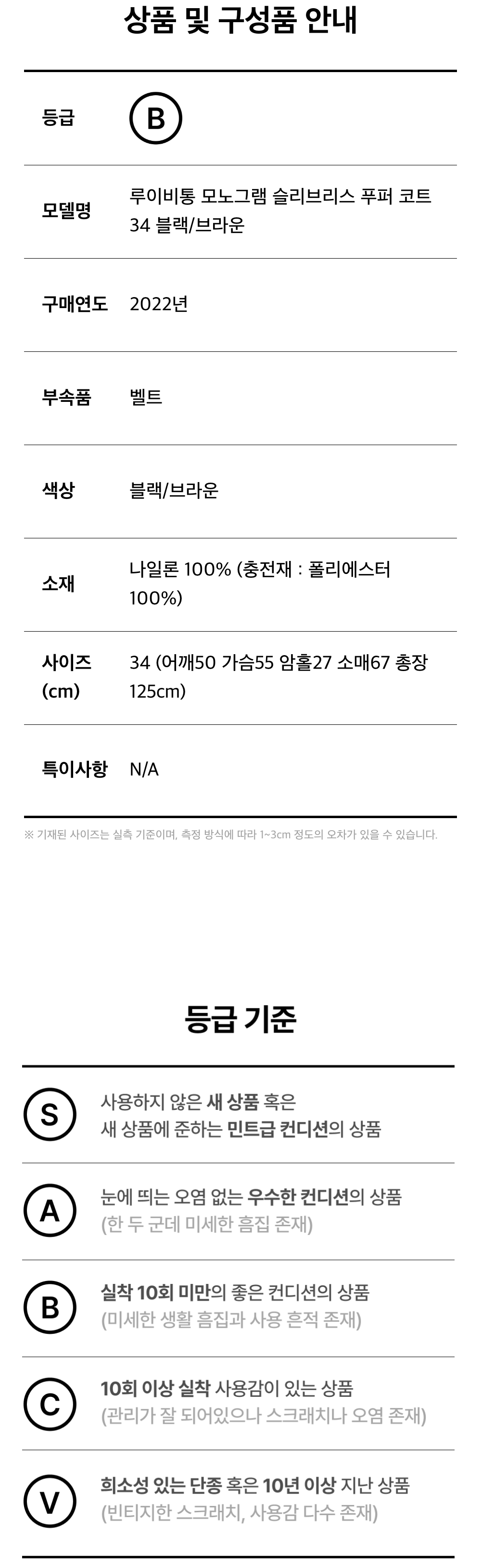 루이비통 모노그램 슬리브리스 푸퍼 코트 34 블랙/브라운(6ET0400)